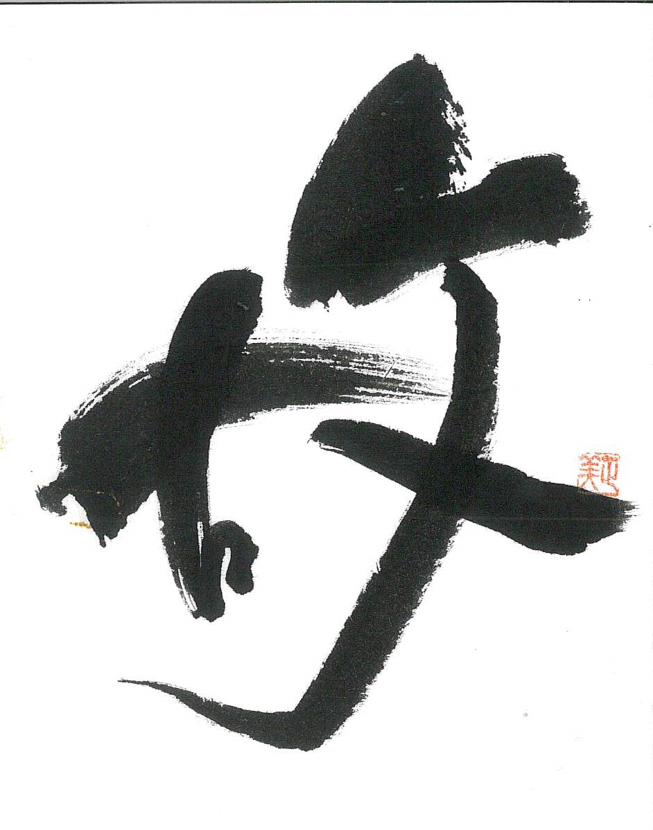 評:長鋒を巧みに使っていい線を出していますね。一画目の蔵鋒で強く、また反対に最終画の細い線が効いています。古い書体を使って書いているところも紗う品の作り方がうまいです。
