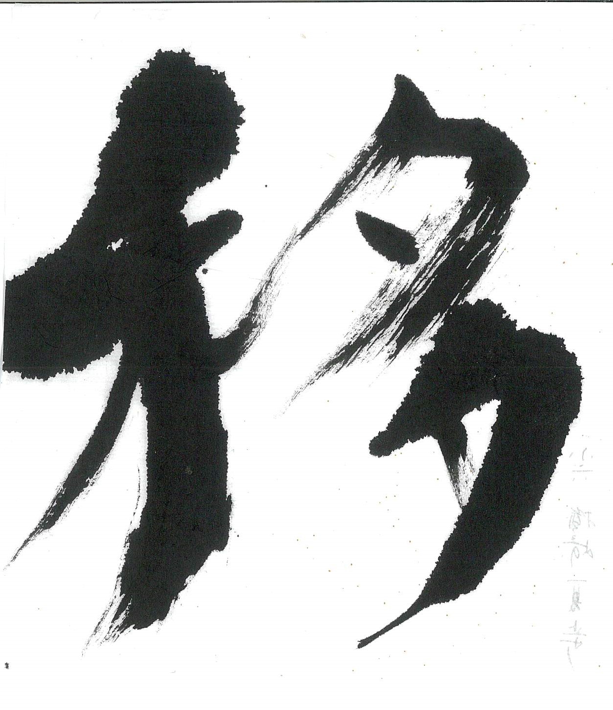 評:実際に書いているサイズは小さいですが、線が軽やかに動いていて好感のもてる作品です。多の墨量の変化も良いと思います。同じ字はこのようの違いを出して書くといいです。