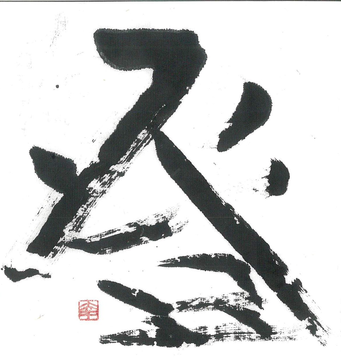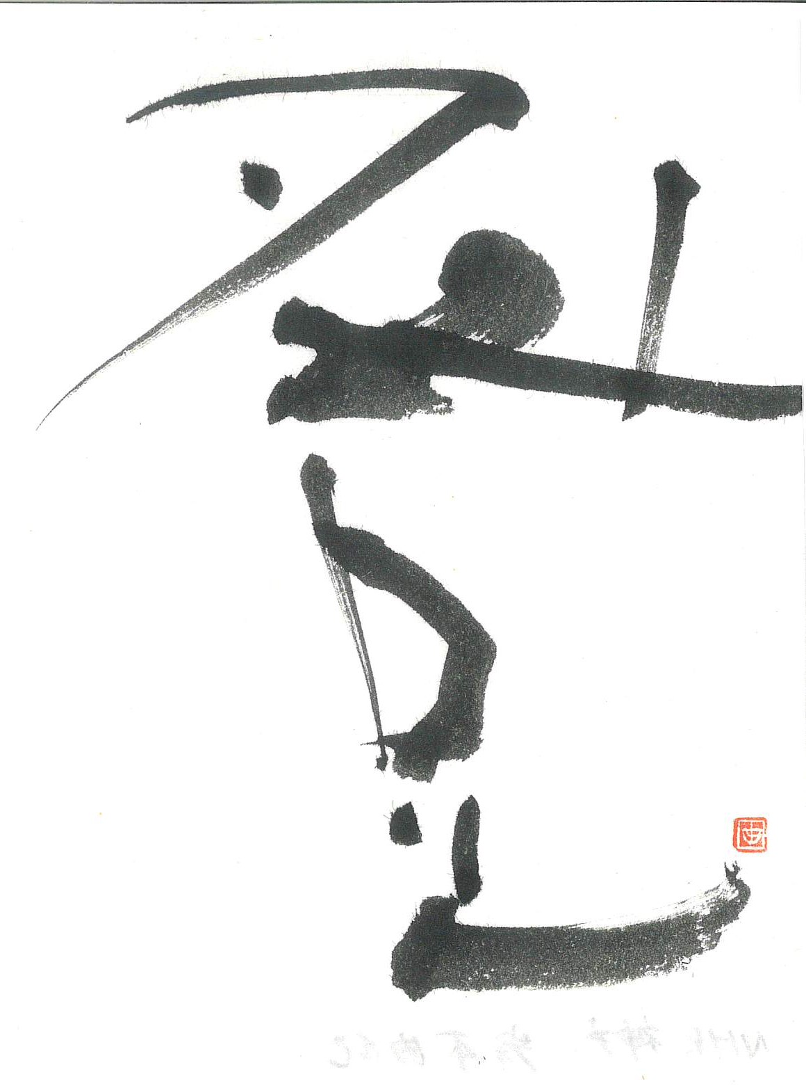 評:はつがしらが、しっかりしていて大きな山を登っているように思います。または大きな屋根のようにも見えますね。線が重たくならない様に潤渇もありよいと思います。こちらは配置は真ん中ですが、字の中の豆のバランスを変えたり、はつがしらの長さを変えたりと工夫されています。