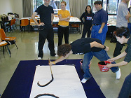 At the Naniwa Calligraphy Association, we naturally also teach Japanese students, but we use the performance art calligraphy as an international “communication tool” for all nationalities. For us, it is important to teach calligraphy not in a stiff or formal manner, but to present an enjoyable “Brush play” way.
