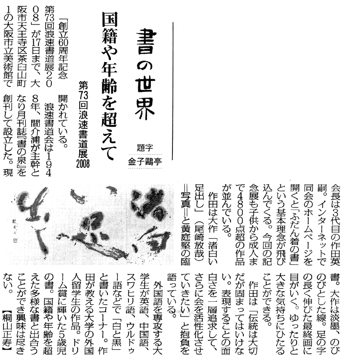 このような盛大な浪速書道展が開催されるためにはいろいろな方のご協力があるからです。