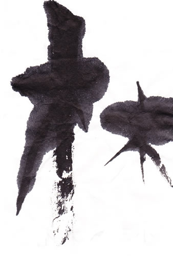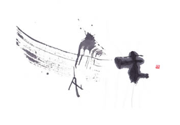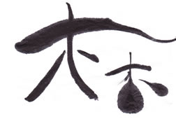 評:こちらも『木』の漢字に大小をつけて作品を作っています。墨がたっぷりあるので幹の太い木のようにも想像できますね。線も力まず書けているのでとてもいいと思います。個性があるように『木』という字にもどれ一つ比べても同じ表現をしていないのが面白いです。