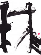 評:『木』の文字の大小や太い細いの変化がとてもあり素敵な作品です。林には様々な木が生えているので、そのイメージにもピッタリです。右側の間の取り方も効いていますね。