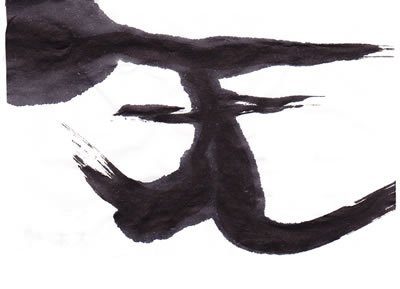 評:こちらの作品は、堂々として王様のひげのように見えました。1画目の「ボンッ」と墨が入っているのも効果的ですね。左右対称の字ですが、線の変化を出しているところがいいです。それから、小さい作品は出来るだけ墨を擦ったほうが色もきれいですので選ばれている作品のように擦って書きましょう。