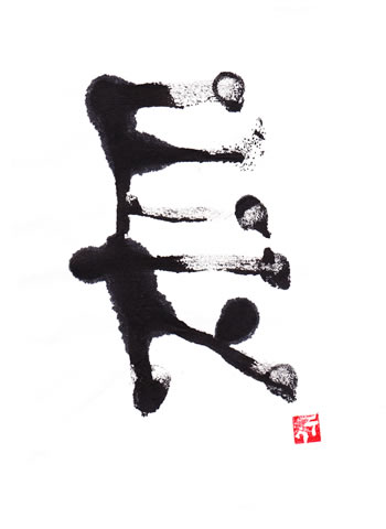 評:「長」という漢字は、成り立ちでも説明があったように、長い髪の毛の長老を現しています。この作品は、足の長いスラっとした人が歩いているようですね。余白もキレイに空いているので、とても明るい作品になっています。余白がキレイだと書いている部分がより引立ちます。この作品では、無いですが、何点か「長」の書き順が横画から書いているものが、見受けられましたので、縦画からが正しいので書き順には、注意して書きましょう。