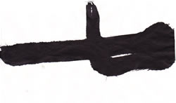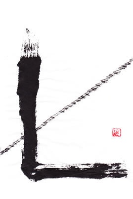 評:この作品は、線が細いですが形的に面白いと思いました。記号のように淡々とした感じもありますが、角度が違うとこうやって表情が豊かになるんだなあと感心しました。画数の少ない字は、逆に面白く表現できるので、また色々とチャレンジしてみてください。