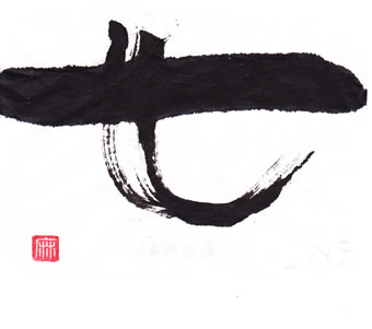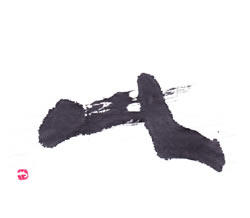 評:とても大胆な作品で目を引きました。横画の線が墨量もあり存在感を放っています。たった二画の字なので、このように思い切りをだすといいですね。漢字の意味にも通じるものがあります。