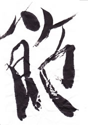 評:学生らしい元気な作品です。こちらも竹冠を思いっきりのよい線で書いているので竹の強さが感じられます。下の部分が似たような線になりましたが、節(ふし)の言葉にあっている作品です。元気がいいので、もう少し大きな紙で書いてもいいと思います。