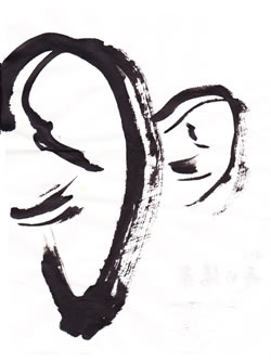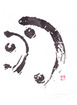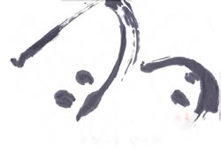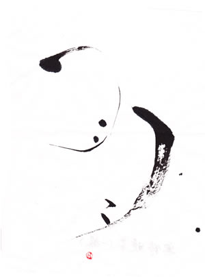 評:とても可愛い「羽}の字です。ひよこのようでほほえましい感じがしました。小さい羽を一生懸命動かしているようです。墨量もあり、存在感のある作品です。書いている大きさ自体は小さいですが、気持ち的におおらかで作品がうまく前にでていますね。