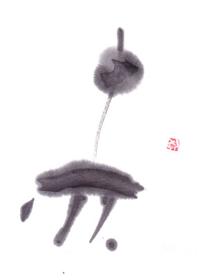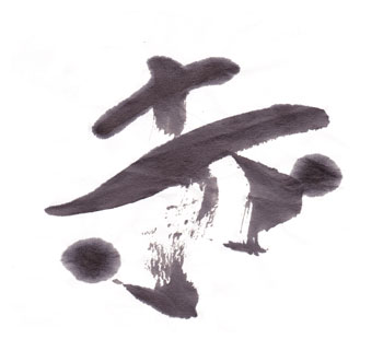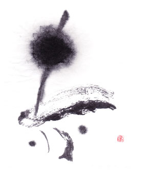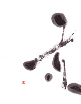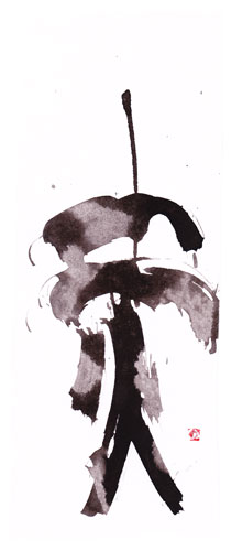 評:この作品は、横の広がりがあり線の変化もうまく表現している作品だと思いました。風を受けて赤々と燃えている火のようなイメージでしょうか?紙の下のほうに書いていて上の余白を空けていて線は軽やかですが、どっしりとした作品に仕上がりましたね。