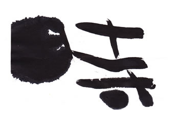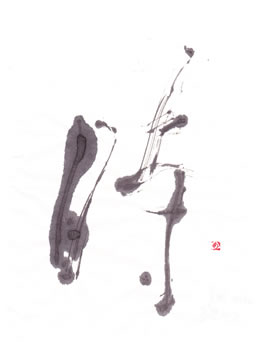 評:時を刻むようなイメージでしょうか?デザイン的に角張った線で、時計を表していsるように思えました。細い線を効果的に使って空間の取り方も面白いですね。墨をたっぷりと使った作品も良いですが、字の意味をどう解釈していくかも作品作りの勉強の一つです。