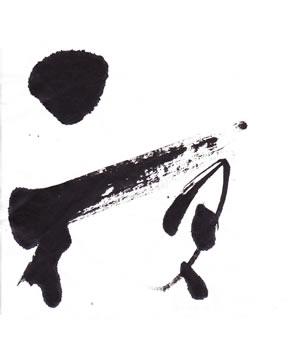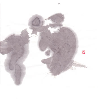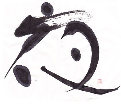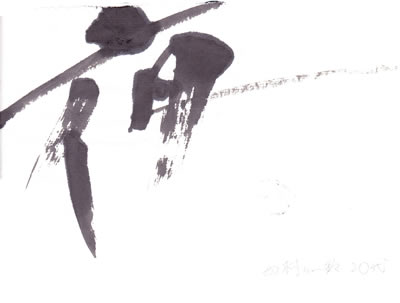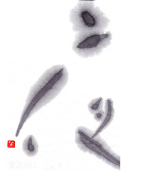 評:こちらは、右側の部分を大きく書いて、字の中の空間が生かされている作品です。夜の暗いなか、灯りを持って照らしているようなかんじでしょうか…二画目のカスレも効いてますね。墨色も柔らかい色でいいですね。