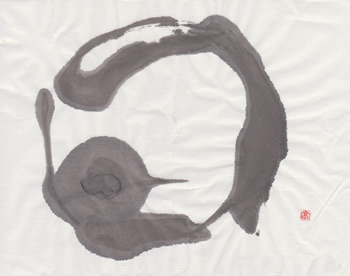 評:こちらも大きく円を描くように動きのある作品ですね。動きが大きいと線が生き生きします。田の漢字は、単純で左右対象な形ですので、変化を付けることを楽しんで書くといいですね。田んぼが広がる風景などを思い浮かべてみましょう。