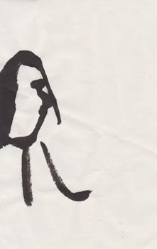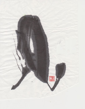 評:こちらは、高い灯台のように見えました。遠くから見えるように、または遠くを見えるように灯台が立っている感じです。にじみを生かしている書き方なので、細い線がより引き立ちます。上の余白がもう少しあってもいいかと思いました。