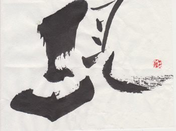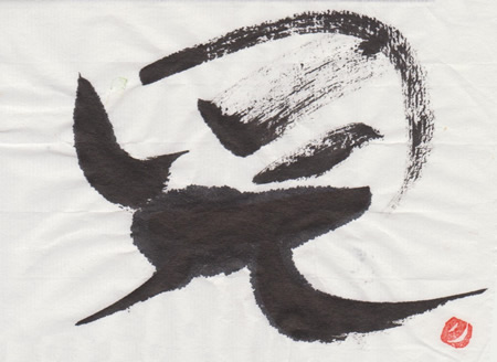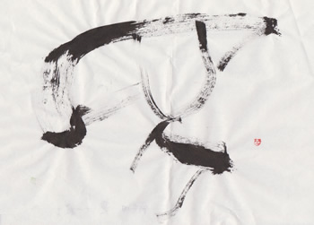 評:「見」という漢字は、大きな目で見ている人の形なので、まさにその感じが伝わります。淡墨のやわらかい線とにじみで構成されて、空間の使い方もいいですね。少し中のかすれの線が弱かったと思うので、左右どちらかもう少し線がはっきり見えても良かったと思います。