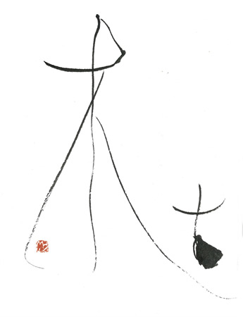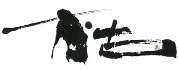 評:こちらの作品は、細い線で全体にカスレをいかしたのがとても「枯」のイメージにあっていると思いました。枯れ枝のようにに見え、柿の木かな?とか想像したくなります。細い線と字形の傾きや空間の使い方がうまいですね。墨を多く使っている作品もよいですが、こうやって漢字の意味に合うように、線も考えて作品を作るとよいと思います。
