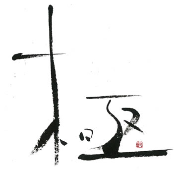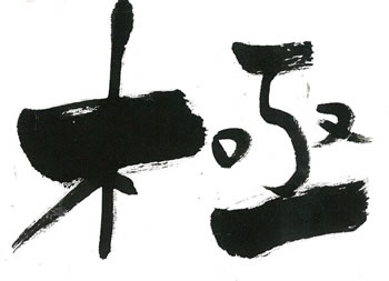評:「極」の漢字は、四角くなりやすいの形なので難しかったと思います。こちらは、どっしりとした字形ですが、線の太細があったりカスレで明るい線だったりと安定感があります。極寒の冬に雪がつもり耐えているようにも見えました。