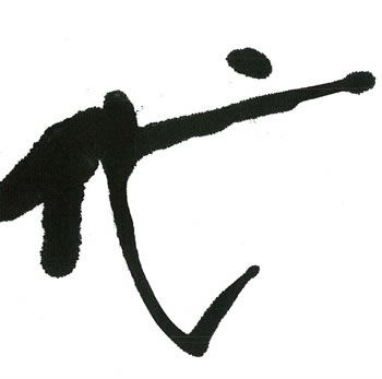 評:太細がとても強調されていて、立体感のある作品です。一画目に思いっきり墨を入れていて上が重くなりそうな感じですが、三画目以降が下部に書いているのでバランスが取れていますね。矢印のようにも見えますので、勢いがついて元気な作品になりました。