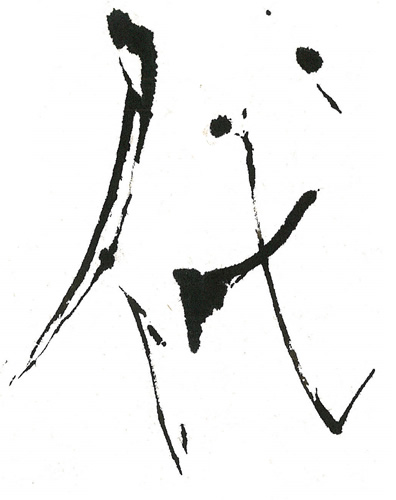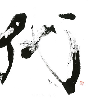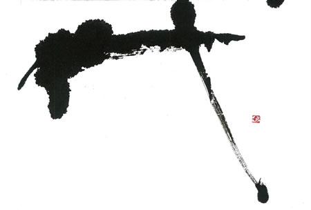 評:こちらは、打って変わって細みの線で、明るい作品ですね。少し毛の硬い筆でしょうか?ピンと張った線でスピード感があります。背伸びをしているような感じです。細い線の中にも少し墨の含んだ部分があるので弱く見えません。そこがいいところです。