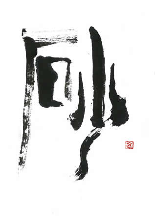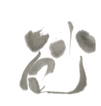 評:ふわ~と砂が舞うような軽くて明るい作品ですね。薄めの墨で線に柔らかさがあります。石と少の字の強弱で作品が立体的に見えます。砂丘の砂のようにサラサラしたイメージに思えます。最終画の斜めの線が風を帯びたようです。