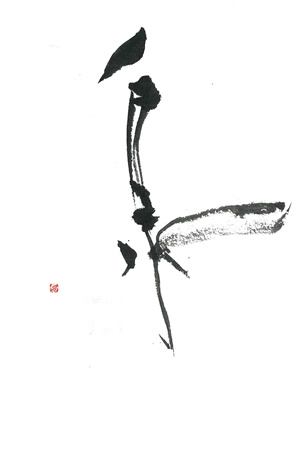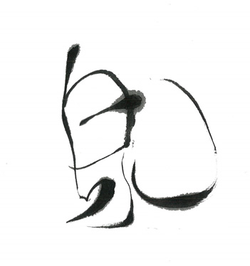 評:この作品は、とても動きのあり見ていて楽しい気持ちになる作品ですね。右に長く伸びたはらいが上向きで、勢いがあります。広がりがある足を大きく伸ばしているようです。字を紙の真ん中に書かずに左に寄せて余白を右に作っているのも、効果的ですね。「白」の部分も線の太細を使って変化を付けています。