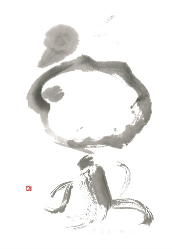 評:こちらは、淡墨を使い、水のイメージをよく出している作品です。大きく「白」を書き、中の一画も真ん中に書かずに左に寄せて書いていて明るい作品になっています。下の「水」は、淡墨ながらカスレを出して書いているのが工夫しているところですね。筆の先やよじれを使ってうまく変化を付けています。