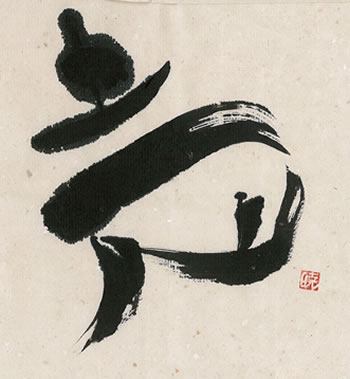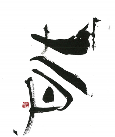 評:とても大胆な墨量で山の頂上で大きな声を出しているようです。白と黒のコントラストが聞いています。あとやはり筆で書いている良さを出すとしたら、遅速が見えるといいと思いますので、どこかに空気の入ったカスレがあると作品全体に動きかでると思います。