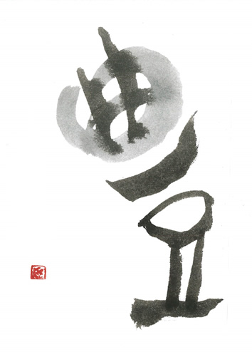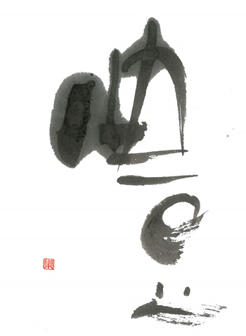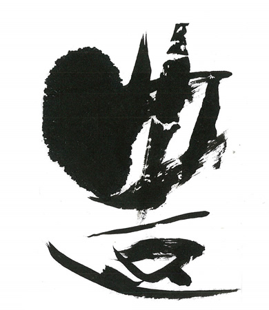 評:『豊』の意味のように、墨量があり存在感のある作品です。字を紙の中心に書かず右に寄せることで、余白ができ作品に明るさと動きが出ます。『豆』の部分の表情がいいですね。四角くなりやすい字にうまく動きを付けていると思います。