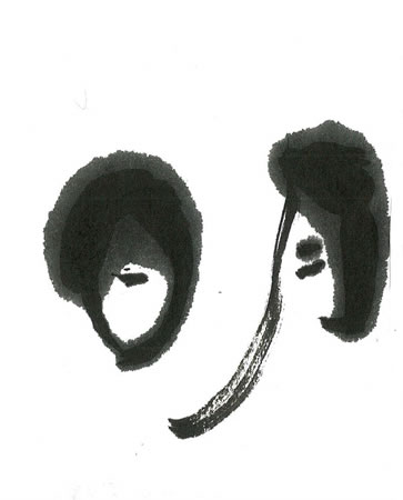 評:こちらも墨量の変化に富んでいて楽しく書いているのがよく伝わってくる作品です。月の左のカスレが作品を重たくせず立体的にみせています。季節は違いますが、月明かりの下の月見の団子のようで愛らしいです。