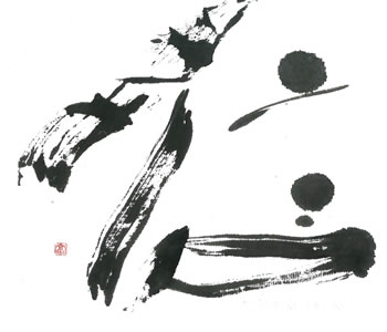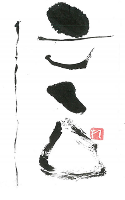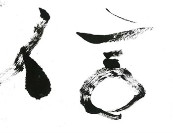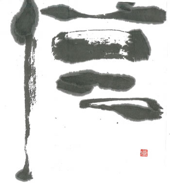 評:とても縦長な作品で楽しく書いているのがよく伝わります。言の横画の間隔も変化を付けて字の中の空間に遊び心がうかがえます。磨った墨で濃い目の淡墨で線も柔らかく見えます。このような作品はのんびりとした時間か流れるような線で、上の作品は勢いがあり時間が早く流れるようですね。
