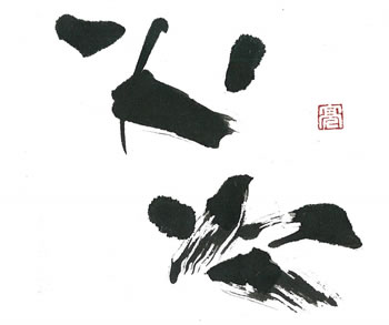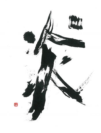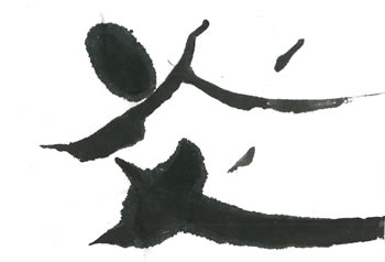 評:こちらは、炎が燃えて火の粉が飛んで激しく燃えた後のような消えかけの炎のように見えます。筆ではないような線で面白い作品に仕上がっていますね。炎でも時間が経つと消えてしまうので、その雰囲気がよく出ています。