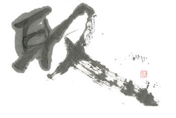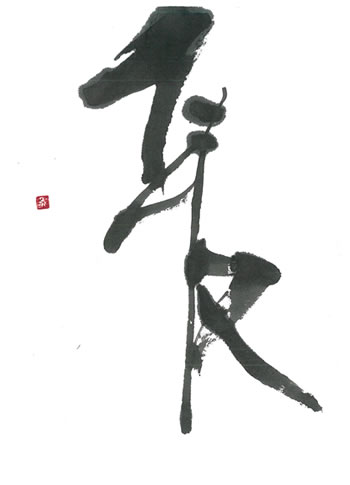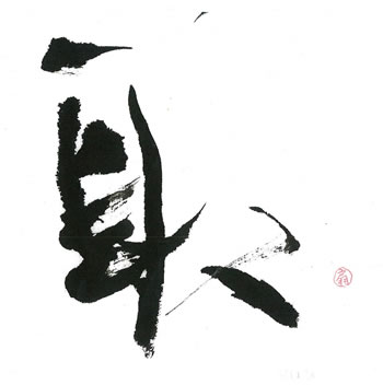 評:とても大胆な構成で、動きをかんじます、又の部分を大きく開けて字の中に空間がよくでき、作品が大きく見えますね。墨量も程よくありカスレとの調和がとれているのは、さすがです。大きなモーションで書いているのが想像できます。小さい作品でも、運筆を大きくし、線に躍動感を出せるように皆さんも挑戦してみてください。