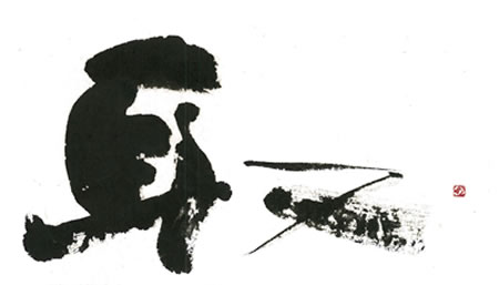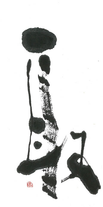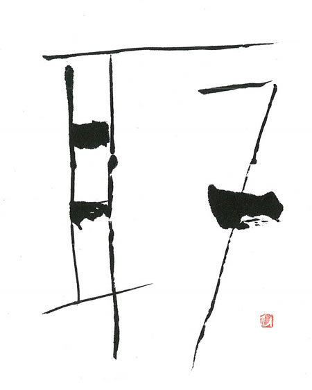評:こちらは、線の太細をデザイン的に取り入れて、抽象絵画のような作品です。少しカスレなどがあるので、線の勢いがみえて動きはあります。何をイメージして書いたのか想像してみるのも楽しいです。耳の横画が等間隔に書いていますが、間隔を変えるとどうなるかなど工夫するともっと表情も出るでしょう。