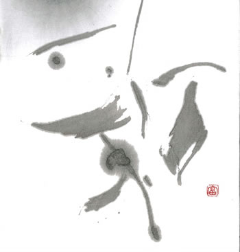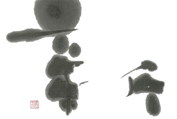 評:にじみとカスレが効果的にある作品です。みずみすしいイメージがします。淡墨の作品も少しカスレをいかしてより立体的に構成するいいですね。最近やはりオリンピックの話題がよくでますが、風を切って氷上で滑る選手たちにも見えてきました。