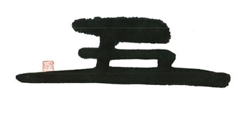 横画の含墨からのカスレは、運筆を大きさを表しています。