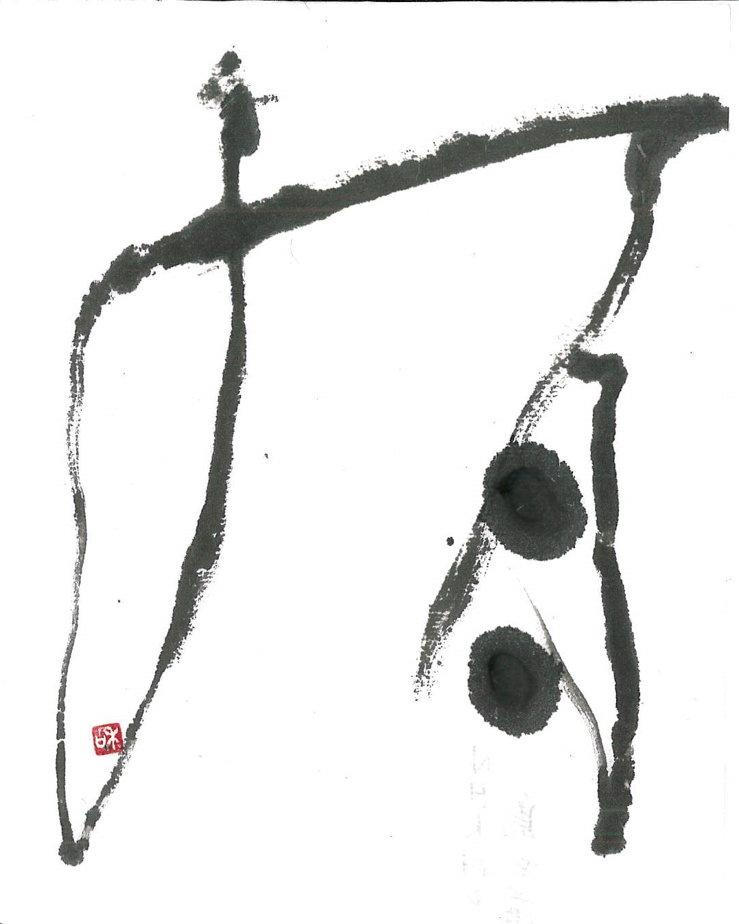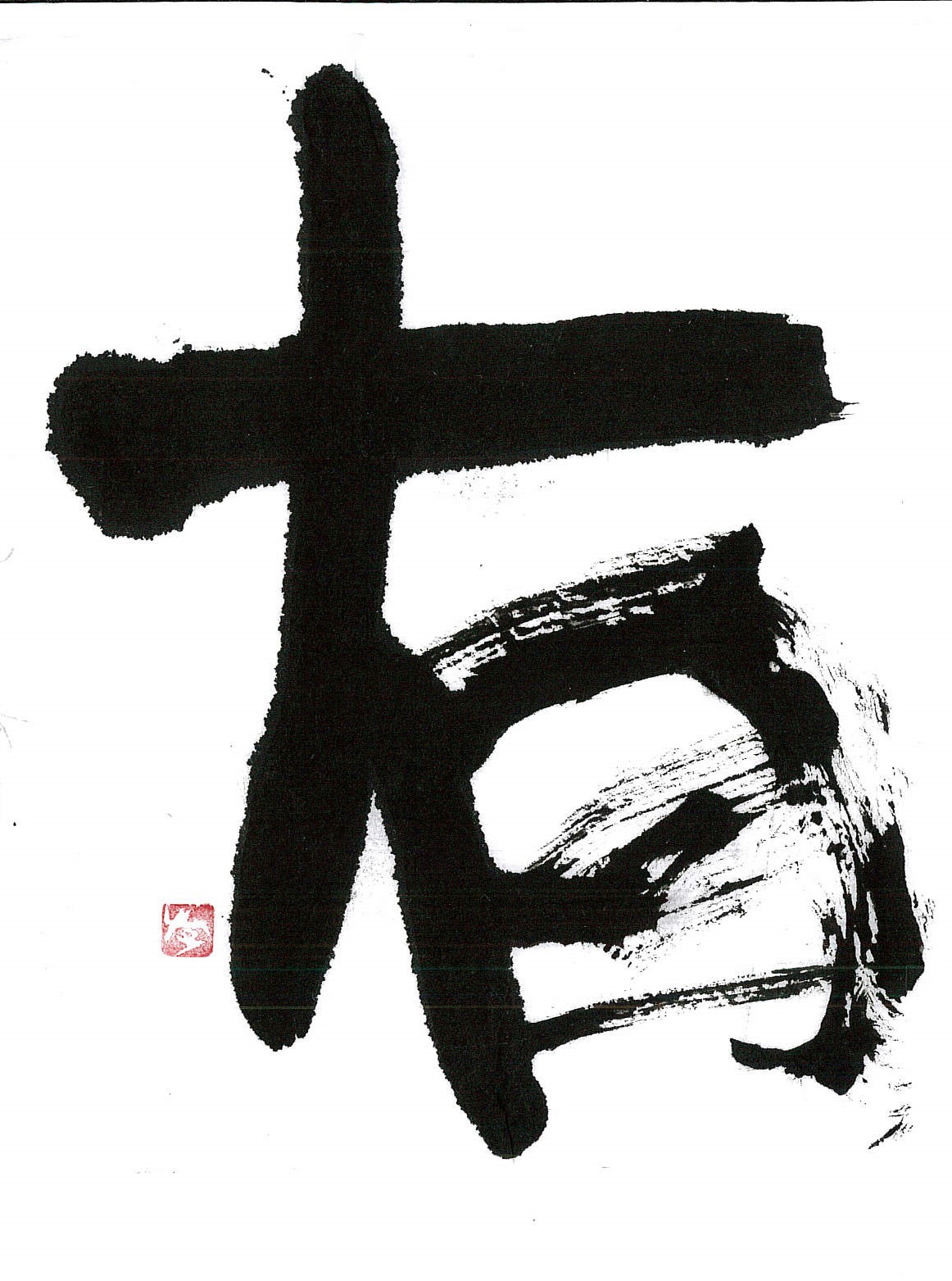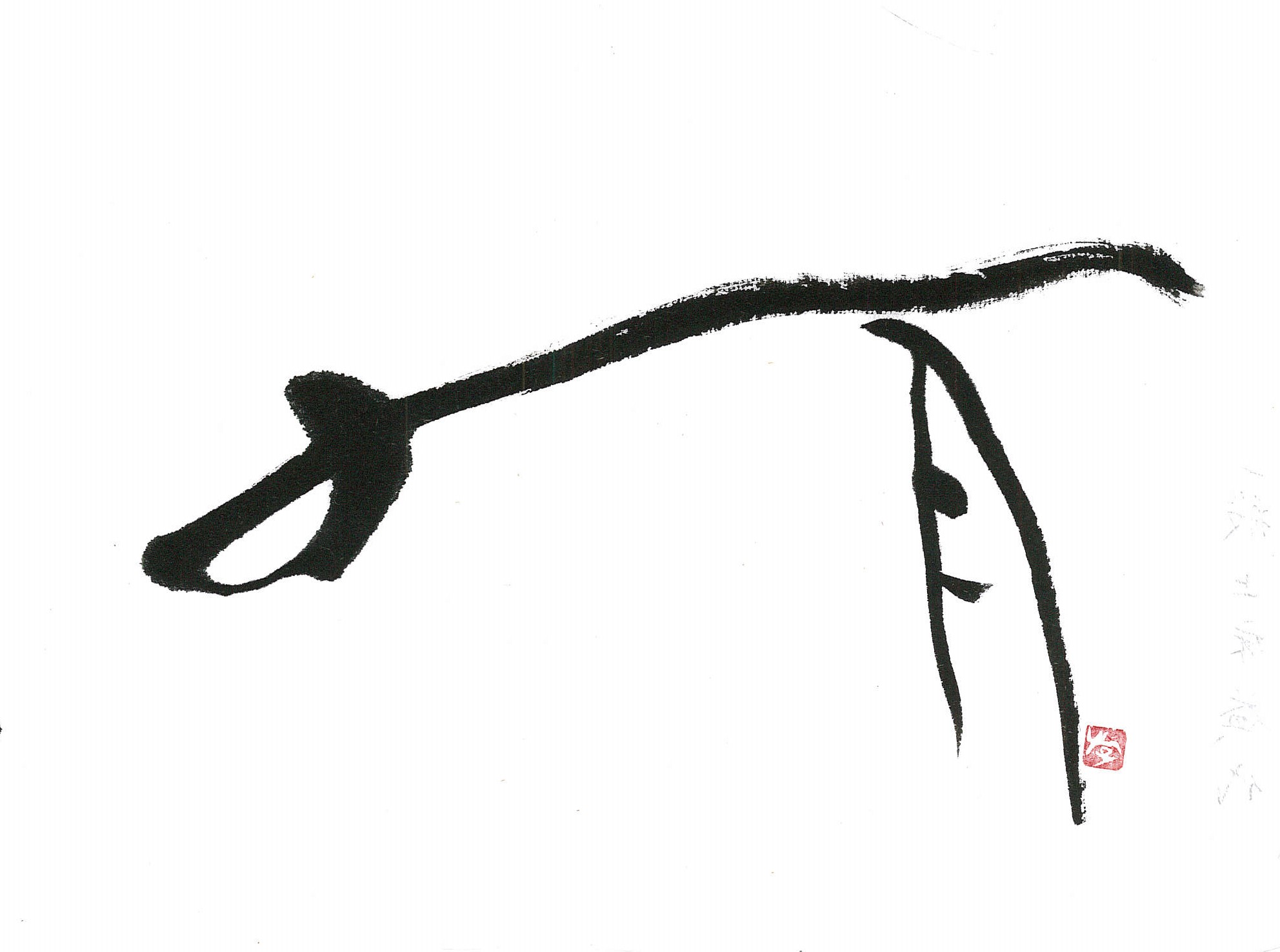 評:とても表情があり、楽しく書いているのが伝わります。少し傾いたのが首をかしげて覗いているようにも見えますね。一画目からの入りがしっかりしていて、続く線が軽やかで変化のある作品ですね。