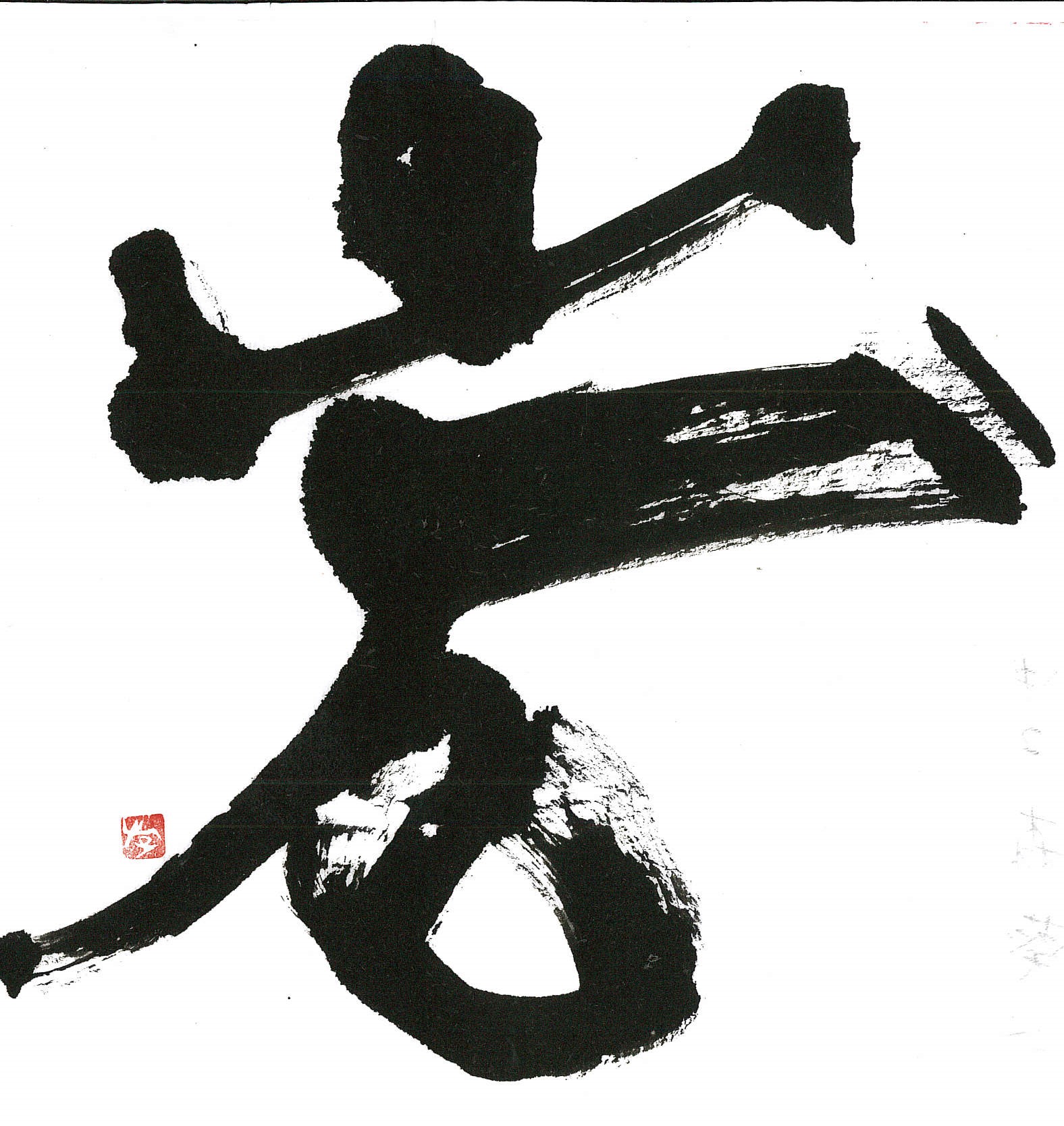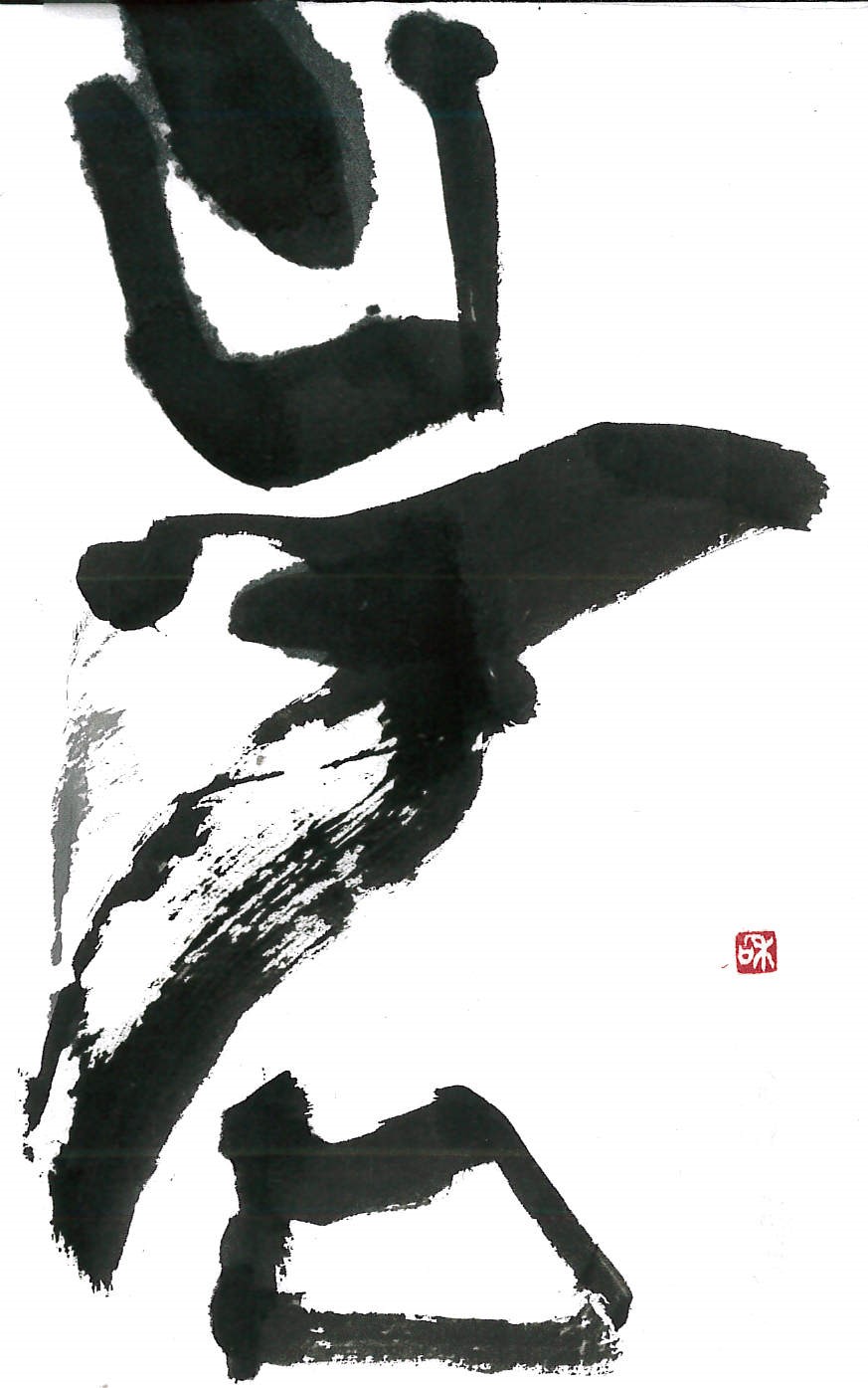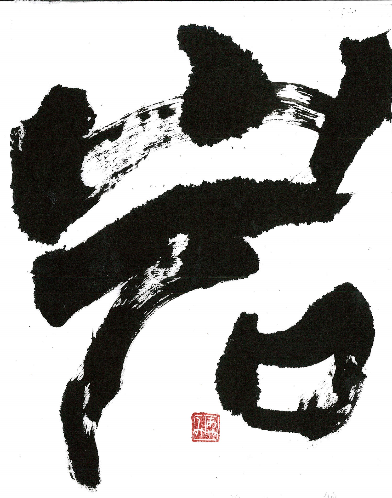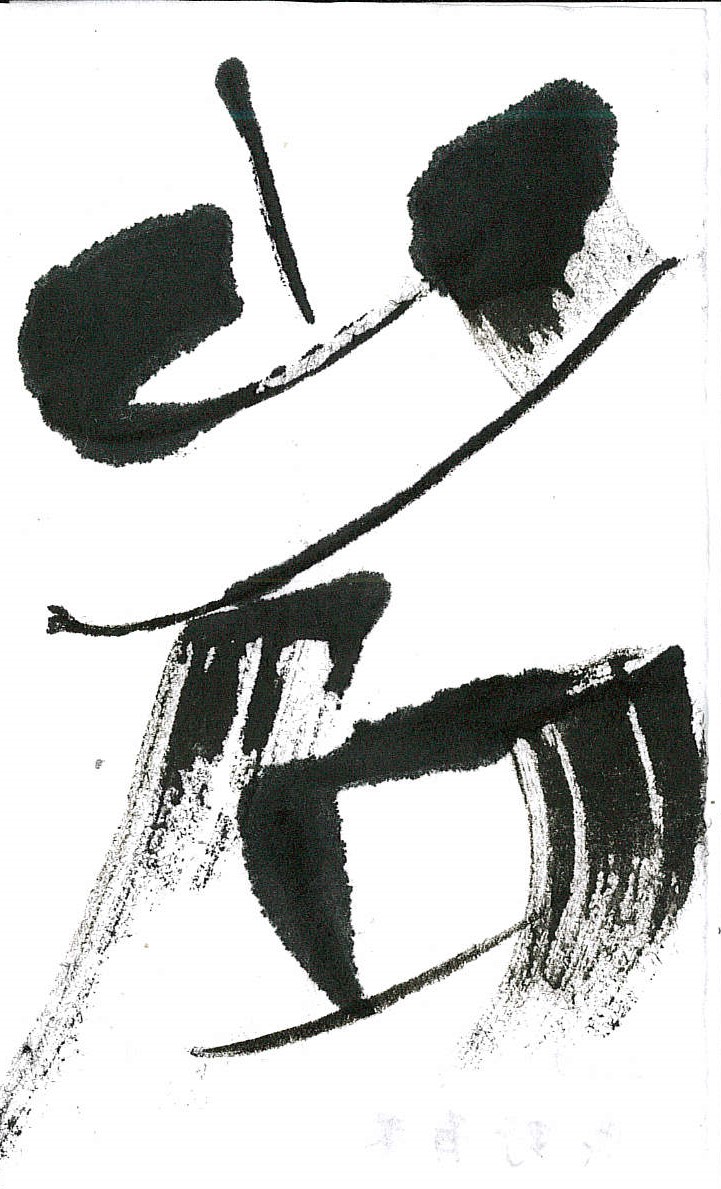 評:ごつごつとした岩の雰囲気がよく出ている作品です。墨色も粒子が荒く古墨の感じが岩の表面見たいです。字形もどっしりとした線ですね。皆さんもその言葉や漢字の意味や情景を浮かべられるような作品を目指してみてください。