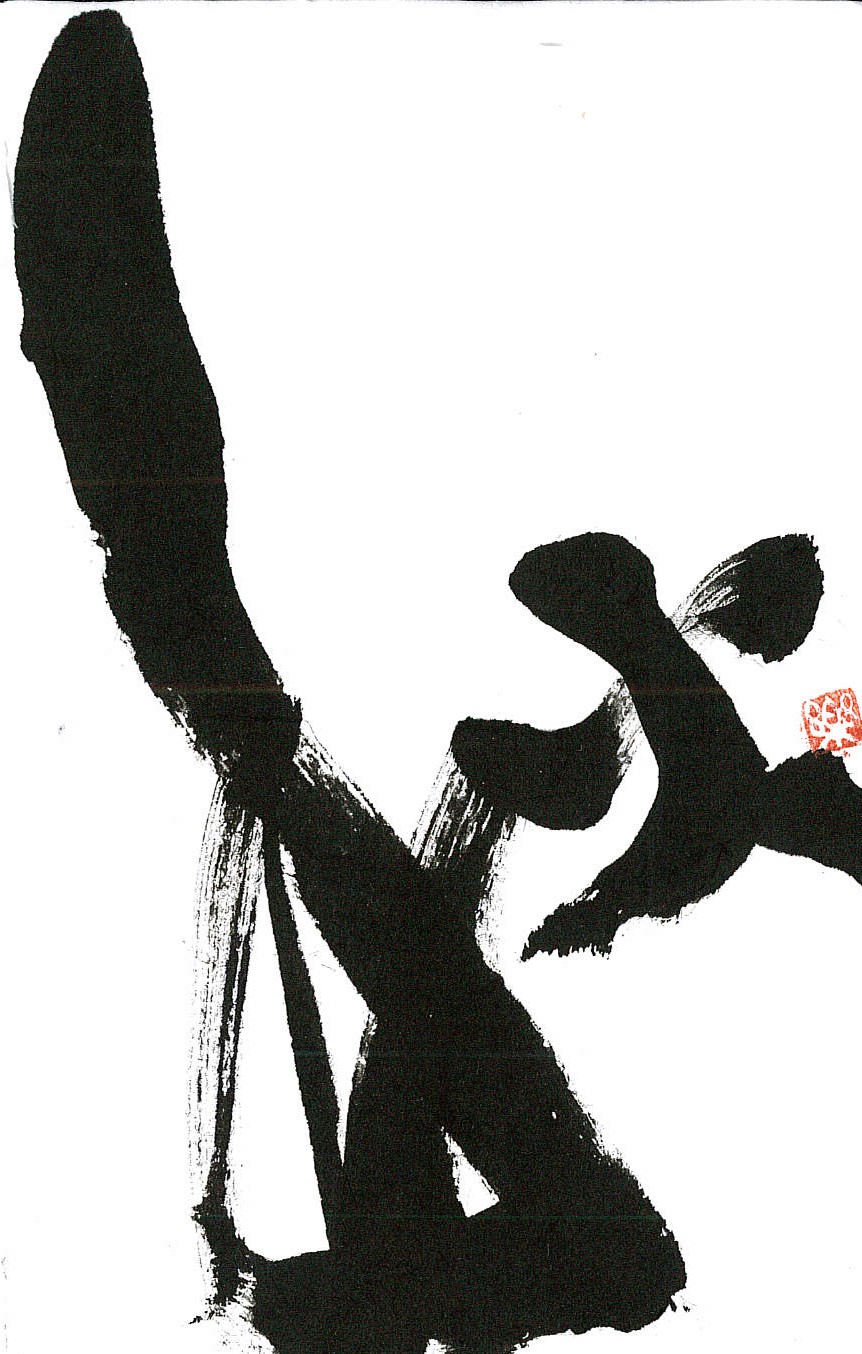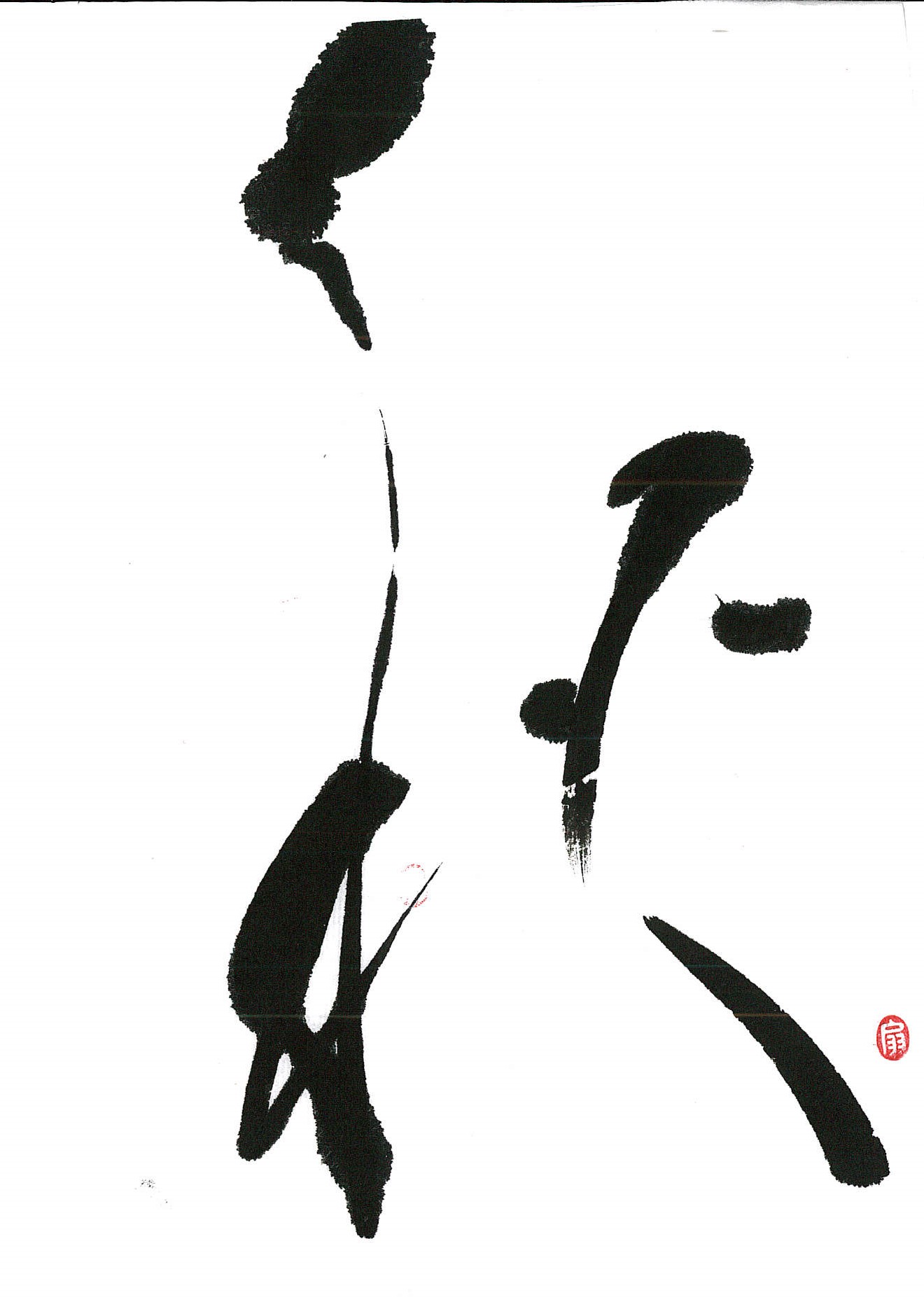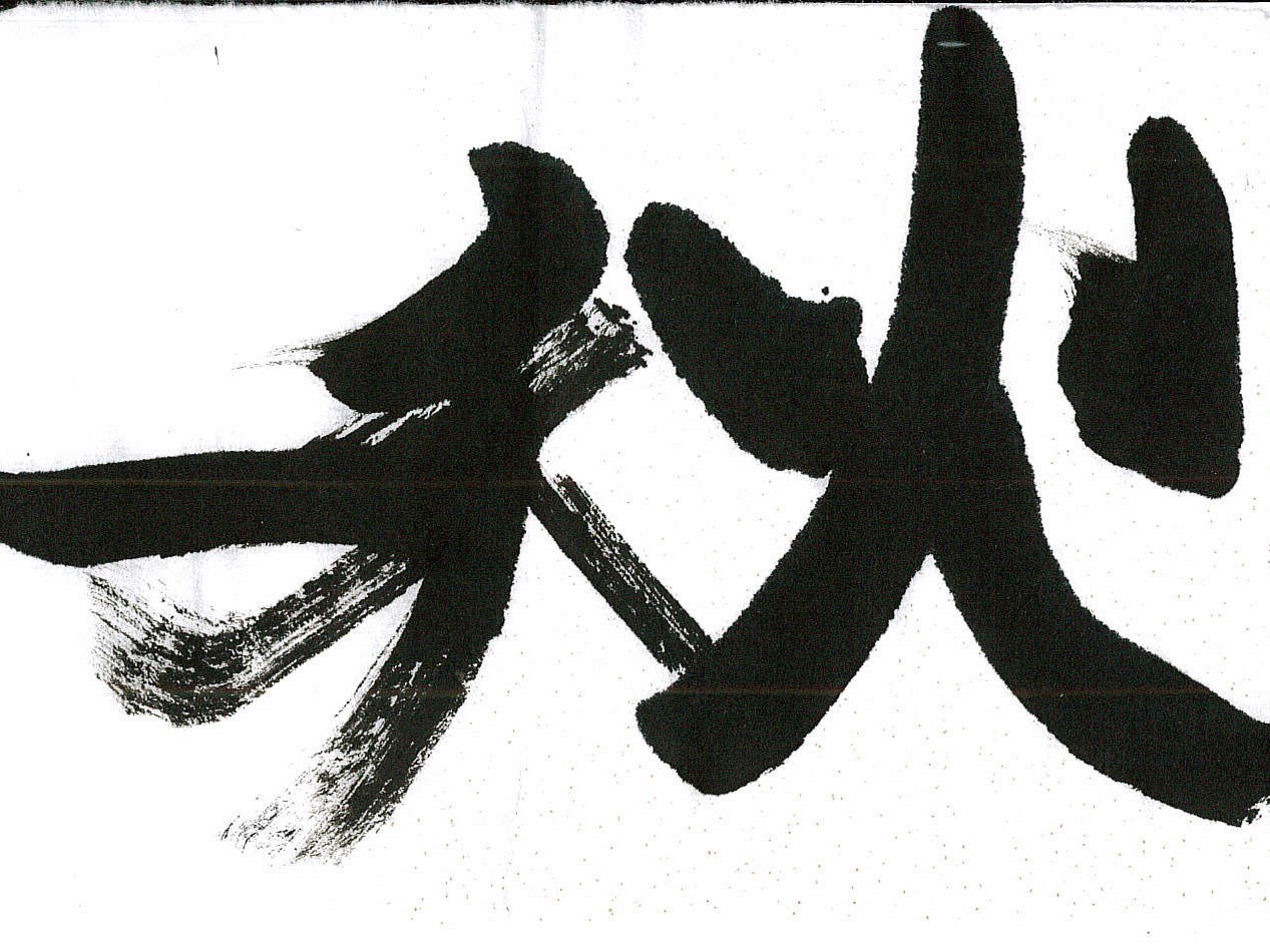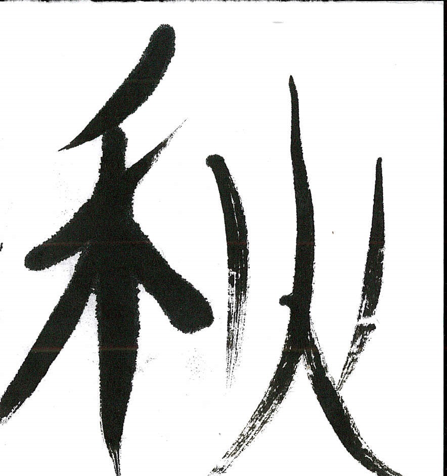 評:爽やかな印象で、秋晴れの澄んだ空気を感じます。コスモスが咲いているようとか想像すると楽しいです」。細い線や淡墨で書くとそのような雰囲気を出せると思います。漢字の意味によって濃い墨や薄い墨と使い分けるといいですね。淡墨の場合は墨を摺えりましょう。