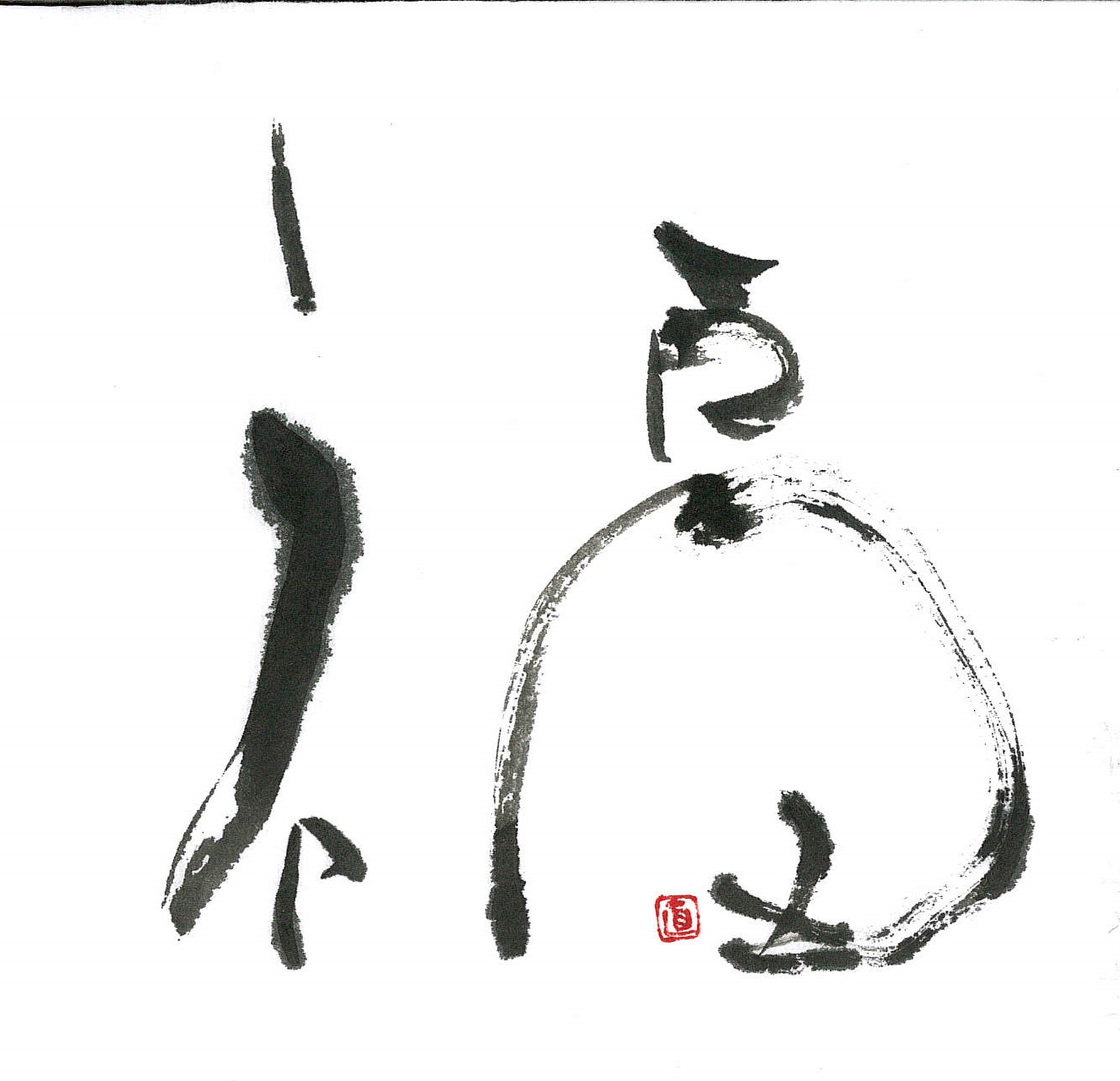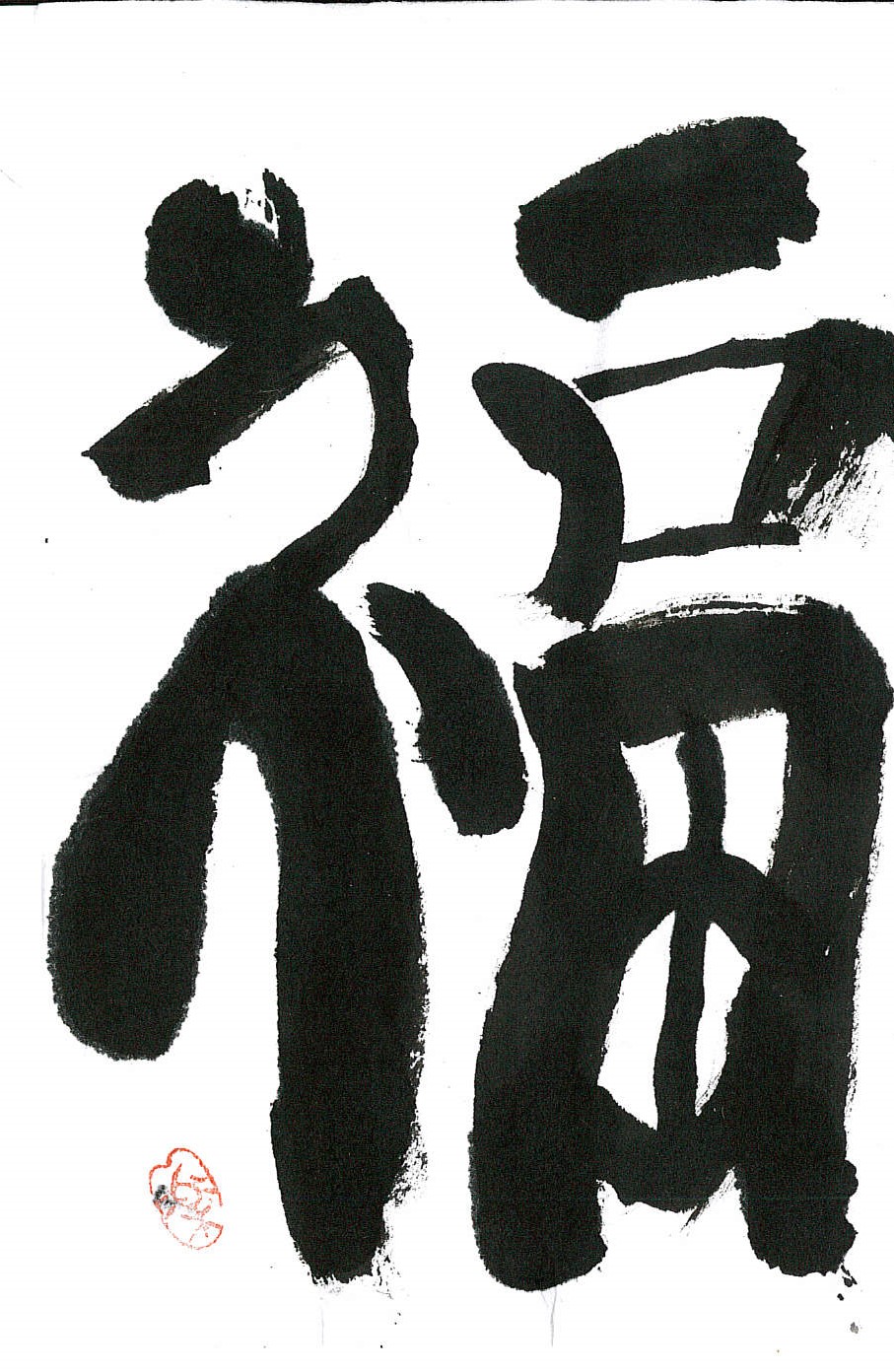 評:今回は、「福」でおめでたい字を想像します。この作品も笑っているように見えて、楽しく感じました。最近はなかなか大きな口をあけて笑うとか想像しにくい世の中ですので、作品を通してホッと笑えると心も温かくなりそうです。