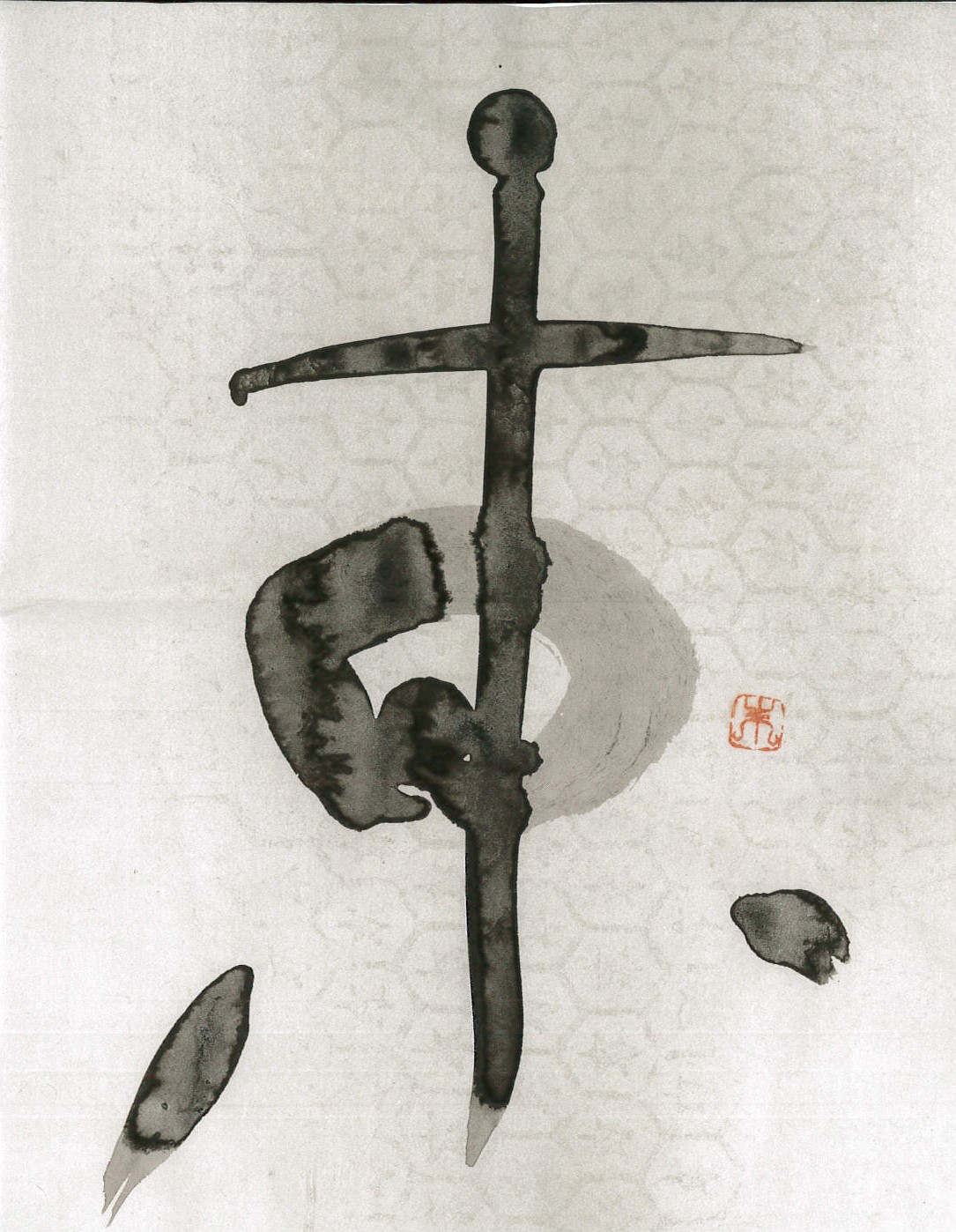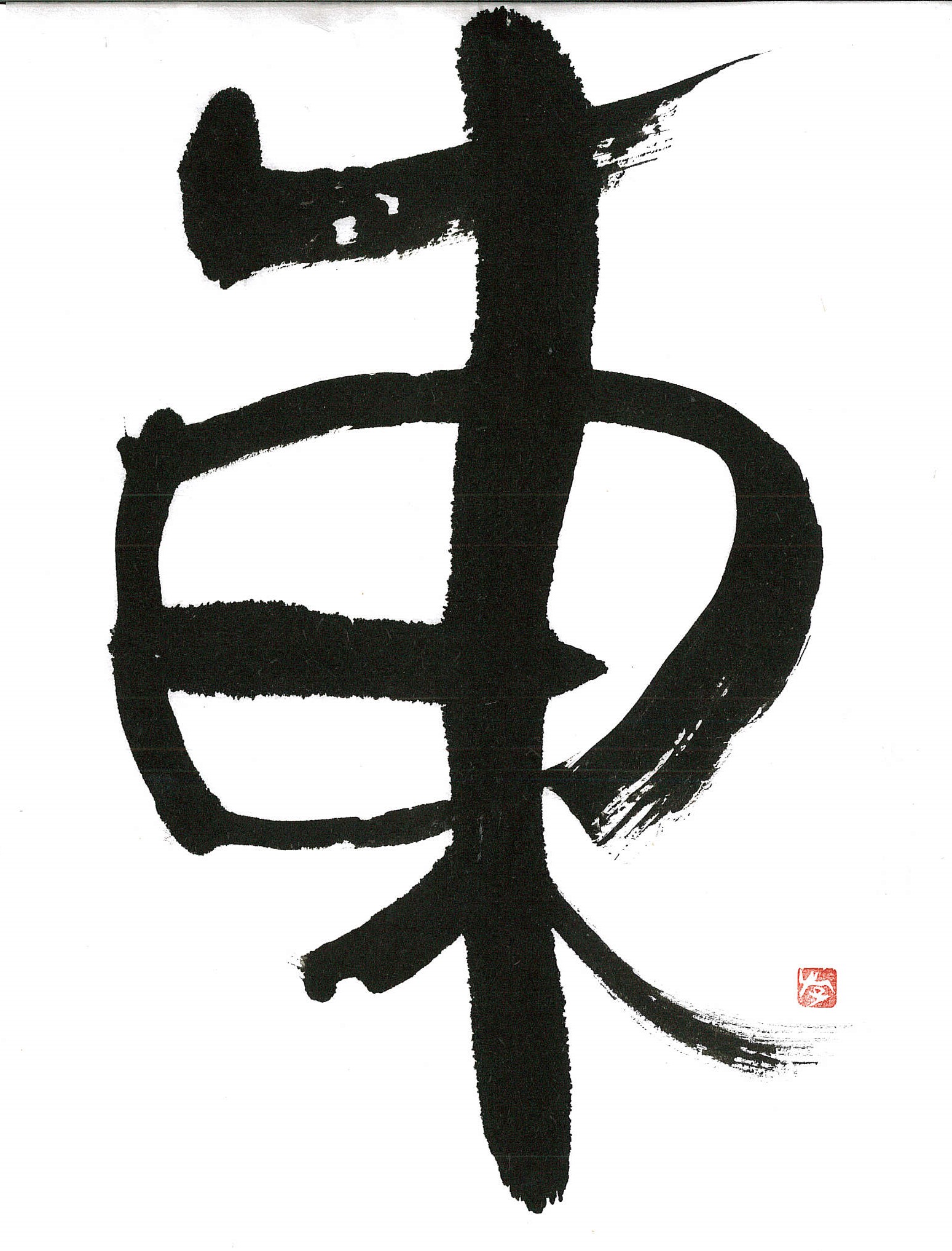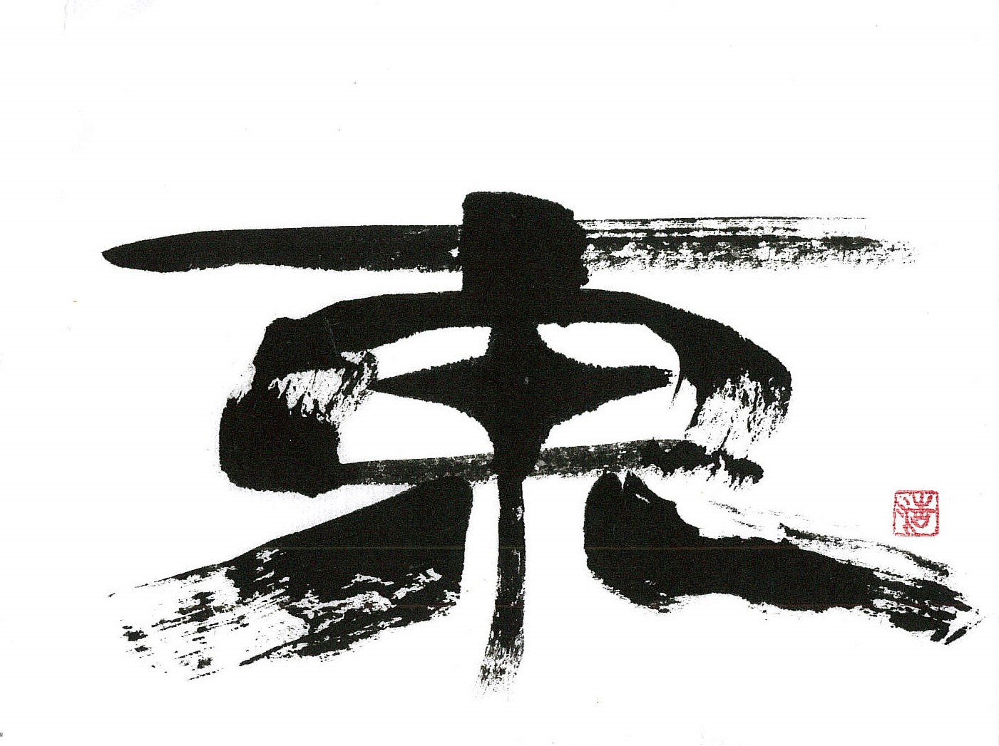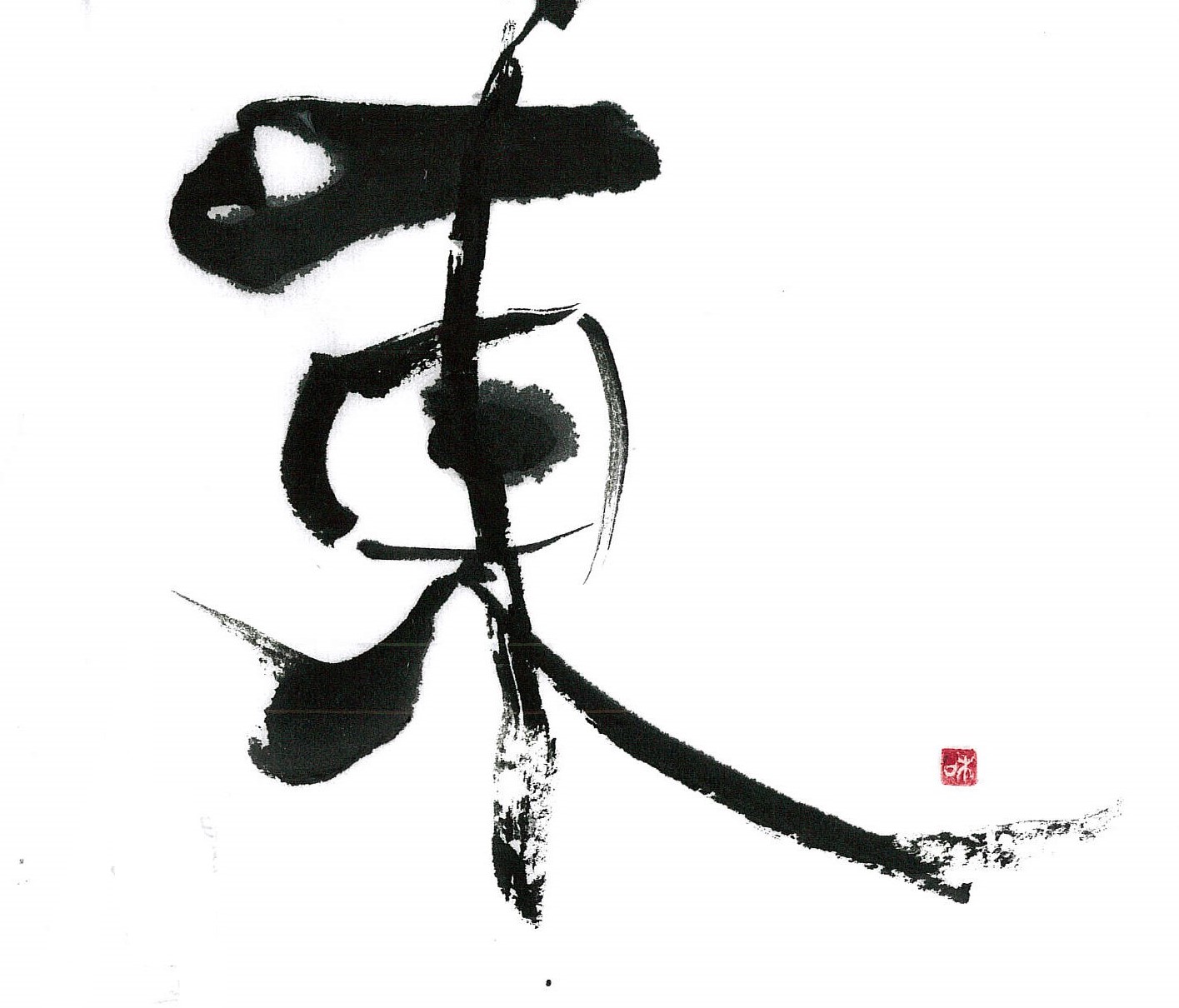 評:左右対称の字なので、均等にならない様に構成しているのか遠近法のバランスでよいと思いました。力まず筆の自然な運びが一体感を出しています。最終画の右払いが紙からはみ出るくらいの勢いで作品が大きく見えますね。