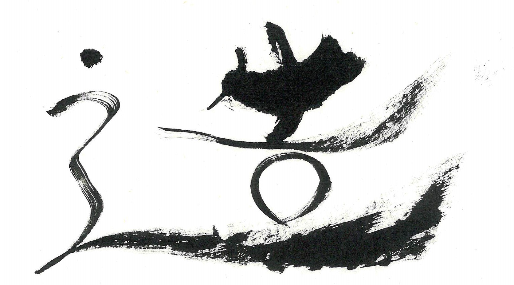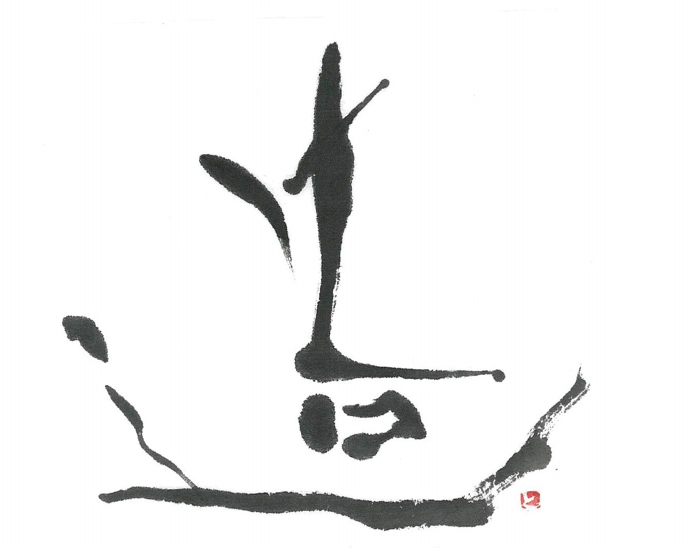 評:こちらは筆ではないもので書いているのでしょうか、面白い線が出ています。硬いものでしょう。色々な面を使っているので太細が極端にでていいですね。皆さんも新しい線を見つけてみてください。