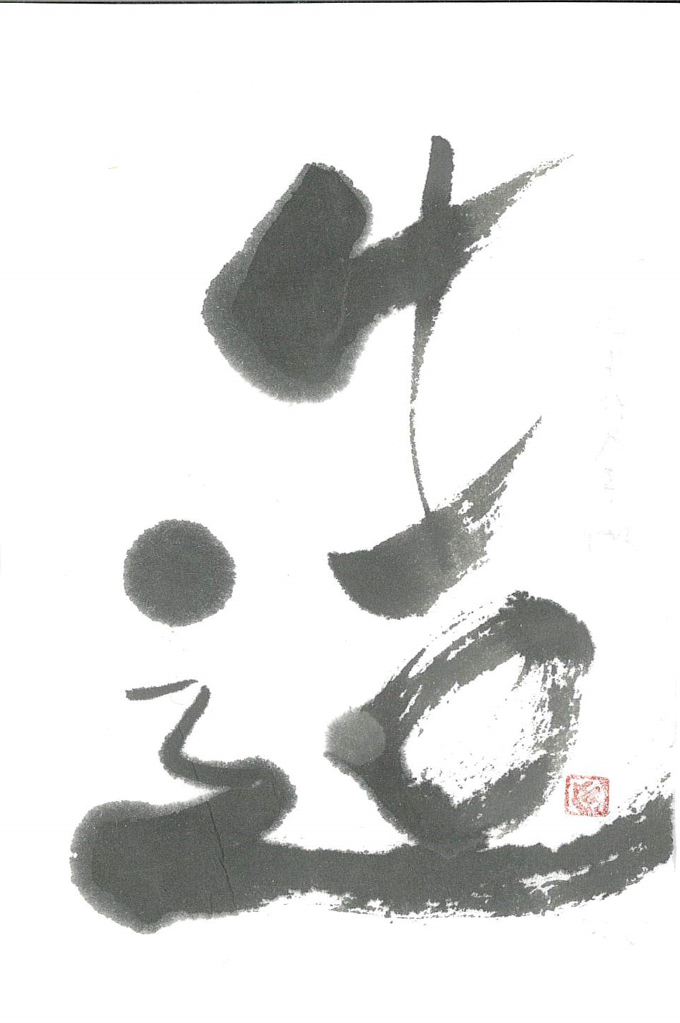 評:とても勢いのある線の作品です。走っているように見えますね。カスレは字の立体感も表せますが、スピード(時間)も感じられます。鋭い線で書くとより速さを表現できますね。新しいものを創造していくイメージにもぴったりです。