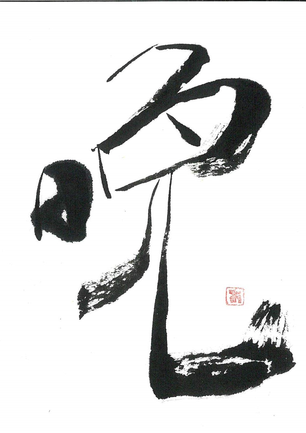 評:墨がしっかり入っていて丸味のある字体で、見ていてほっこりします。子どもらしい素直な線ですね。余った紙に書いている作品だったので、余白の取り方も工夫するように、半紙やはがきサイズなど四角の紙にどう入れるかを今後挑戦してください。
