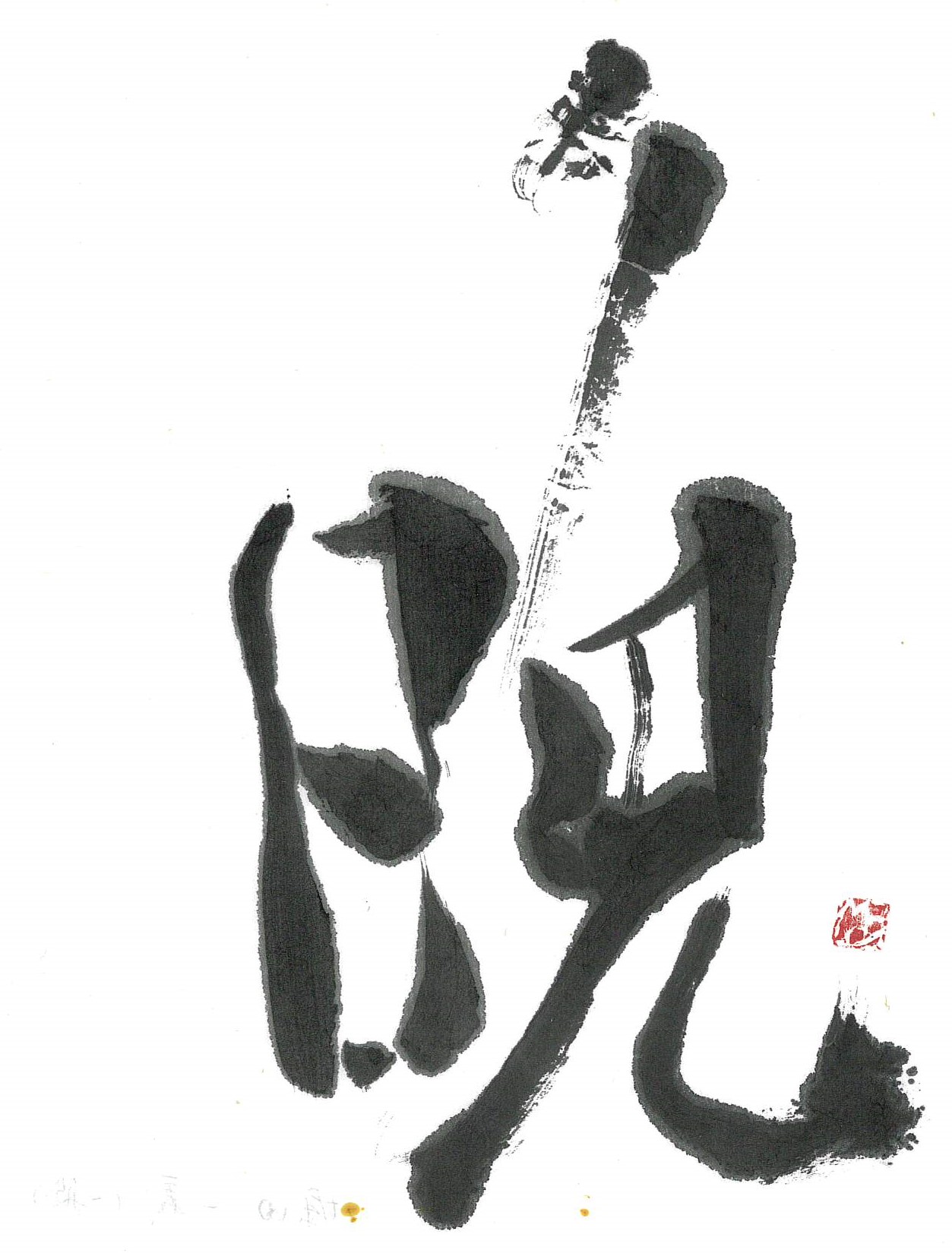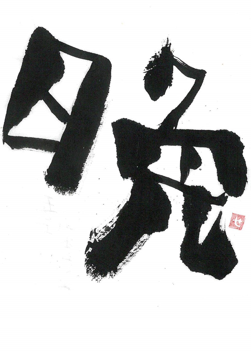 評:線の勢いが強くカスレが効果的です。晩は遅いや暮れの意味がありますが黒を見せるには周りの白やカスレがあるとより引き立ちます。しっかり墨をつけて黒々した日暮れの様子を表現してみましょう。