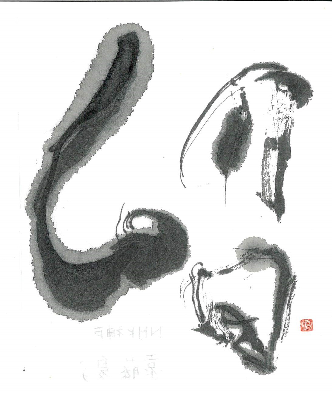 評:こちらは対照的に軽やかで細い線を生かして書いています。トップの作品と同じく上の部分のバランスや大きさを変えて変化を出していますね。長鋒の筆は毛が長く扱いにくいですが、面白い線が出る場合があります。一画目からの動きはまさにそのような感じですね。