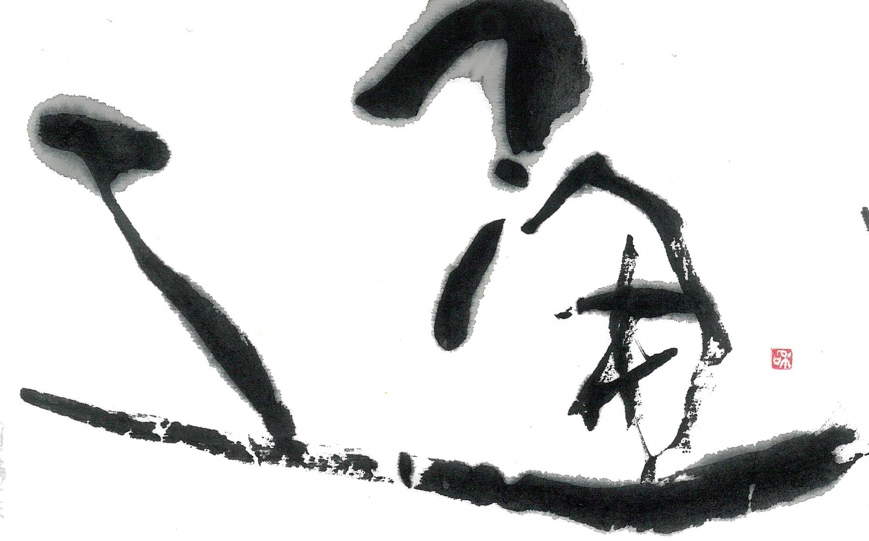 評:きれいな淡墨で基線がしっかりでている墨色です。しんにょうを思いっきり長く書いて、進んでいる道をイメージさせますね。紙のサイズは小さいですが、空間があるのでゆったりとした作品に見えます。