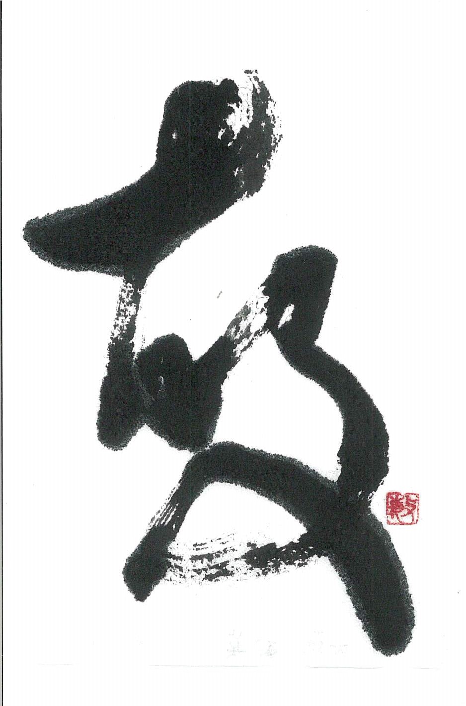 評:長鋒を巧みに使っていい線を出していますね。一画目の蔵鋒で強く、また反対に最終画の細い線が効いています。古い書体を使って書いているところも紗う品の作り方がうまいです。