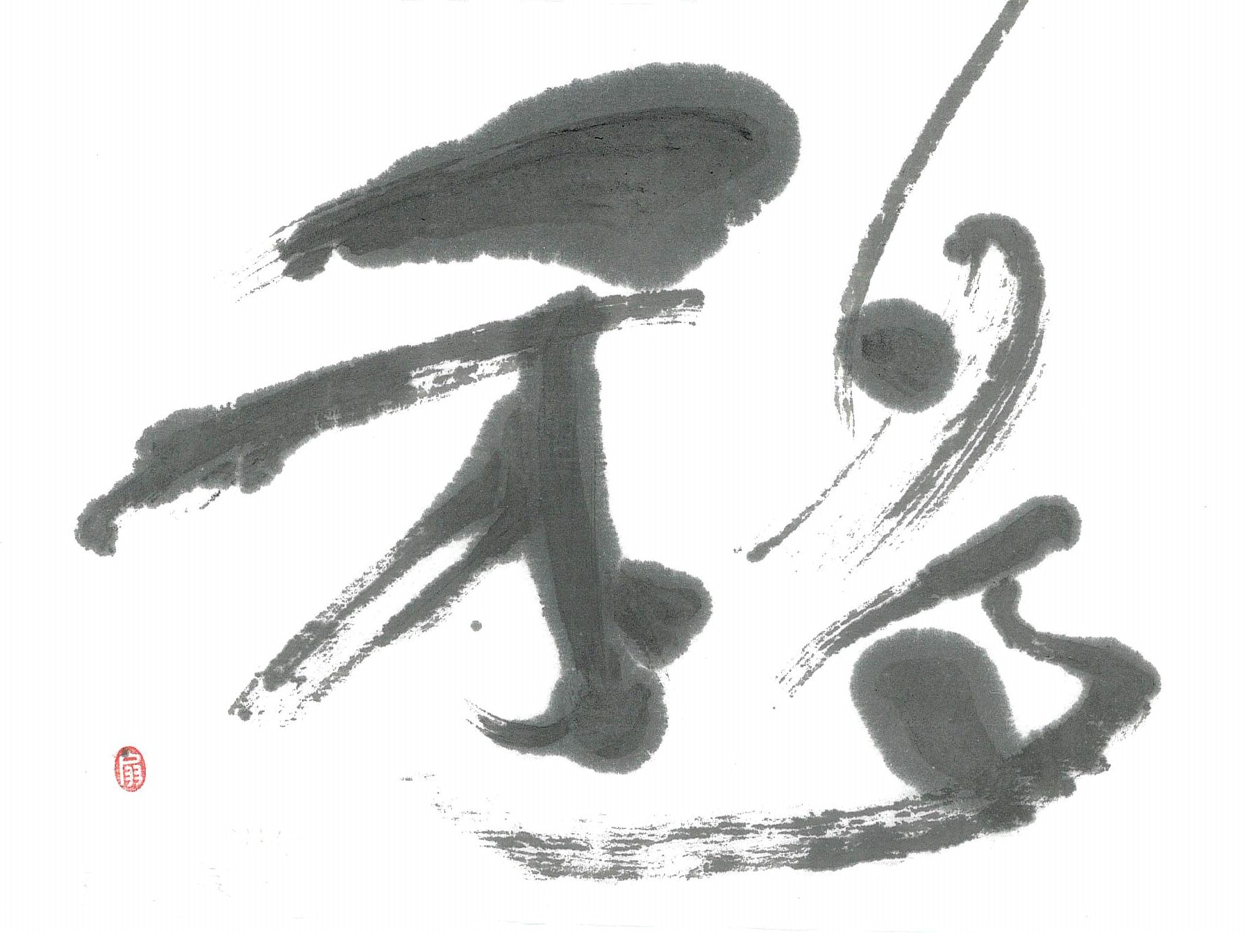 評:実際に書いているサイズは小さいですが、線が軽やかに動いていて好感のもてる作品です。多の墨量の変化も良いと思います。同じ字はこのようの違いを出して書くといいです。