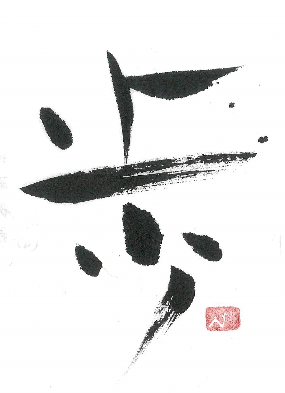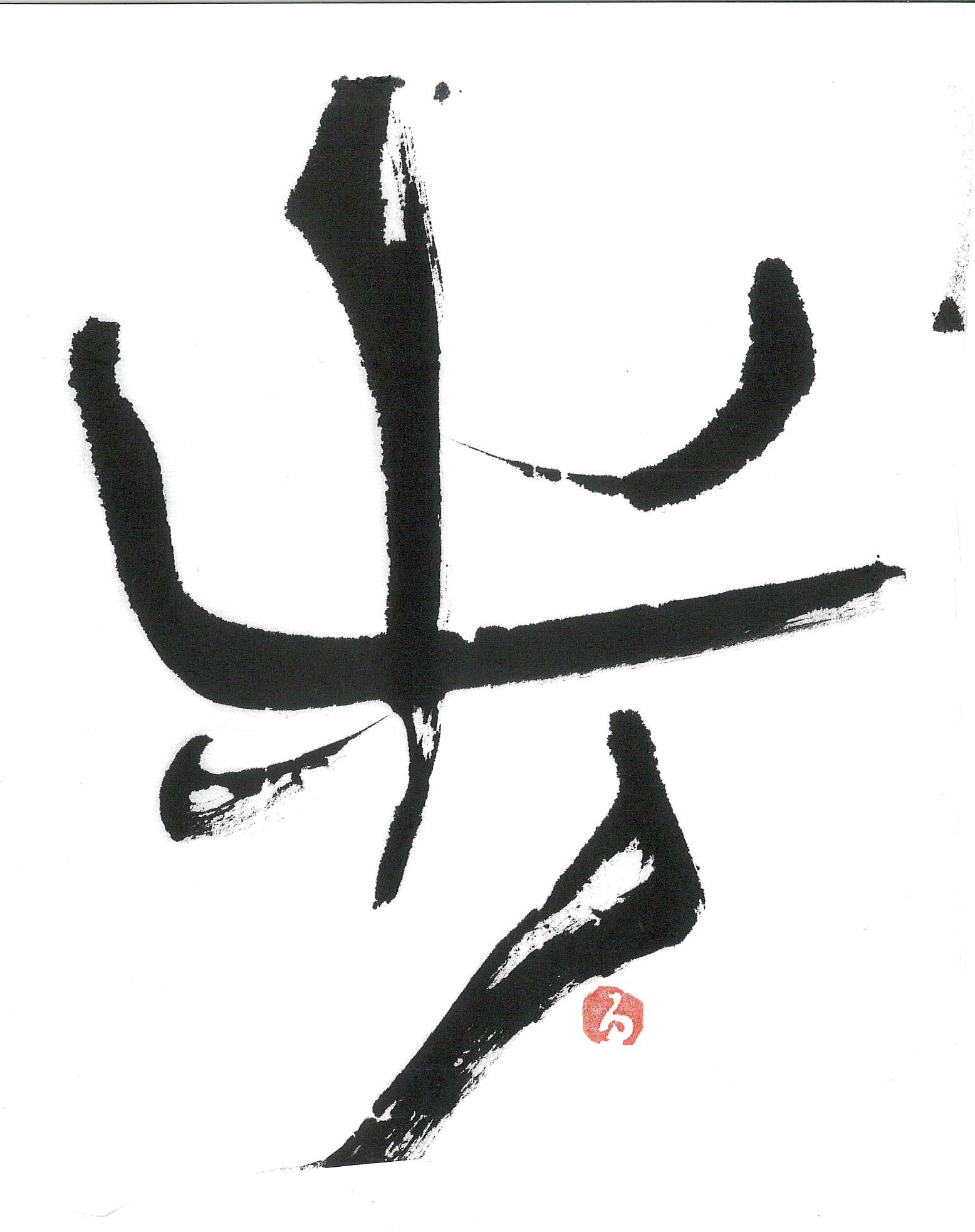 評:「歩」は足あとの形の意味なのですが、この作品は軽やかに歩いているような雰囲気があります。線質によってとらえ方が変わるので面白いですね。スキップや早歩き、ゆっくり歩くなどイメージして書くといいですね。