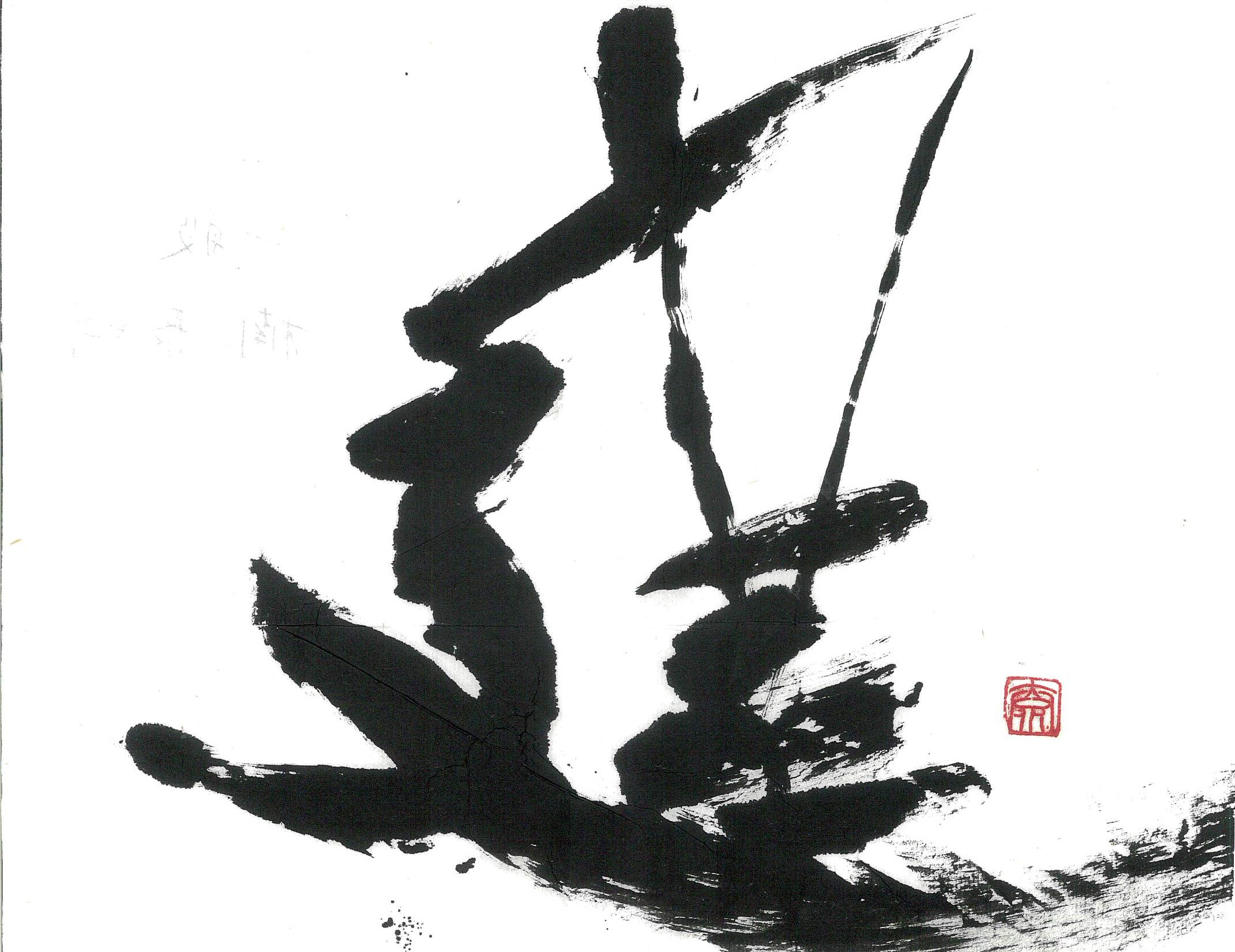 評:豪快な線で目に留まる作品です。大きな建造物がドーンと立っている感じがします。太い線だけでなく細い線や空間を生かしているので重く感じませんね。